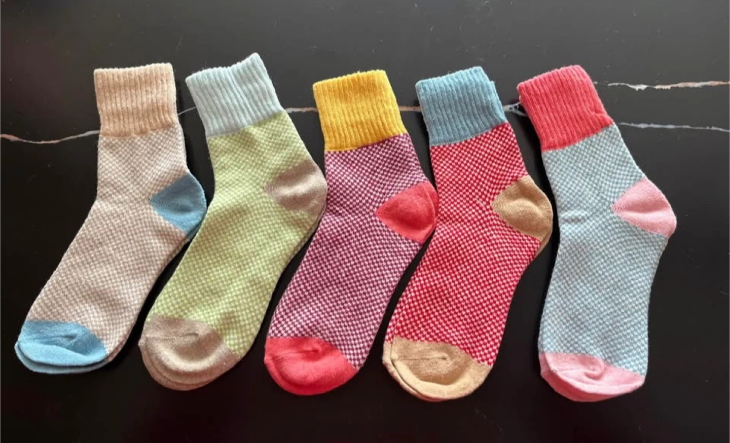 Selling a set of five colourful socks! They come in assorted colours and patterns, perfect for adding a bit of fun to your sock drawer