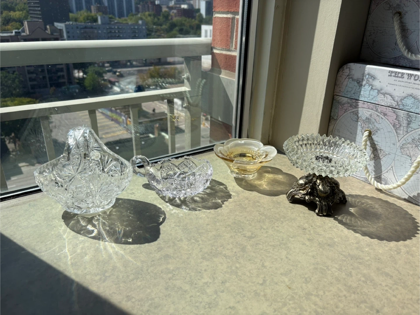 Selling a collection of elegant crystal vases, bowls, candle holders and figurines. There's also a Bohemia basket and other unique pieces to add a touch of sparkle to your home decor. $20 for the lot