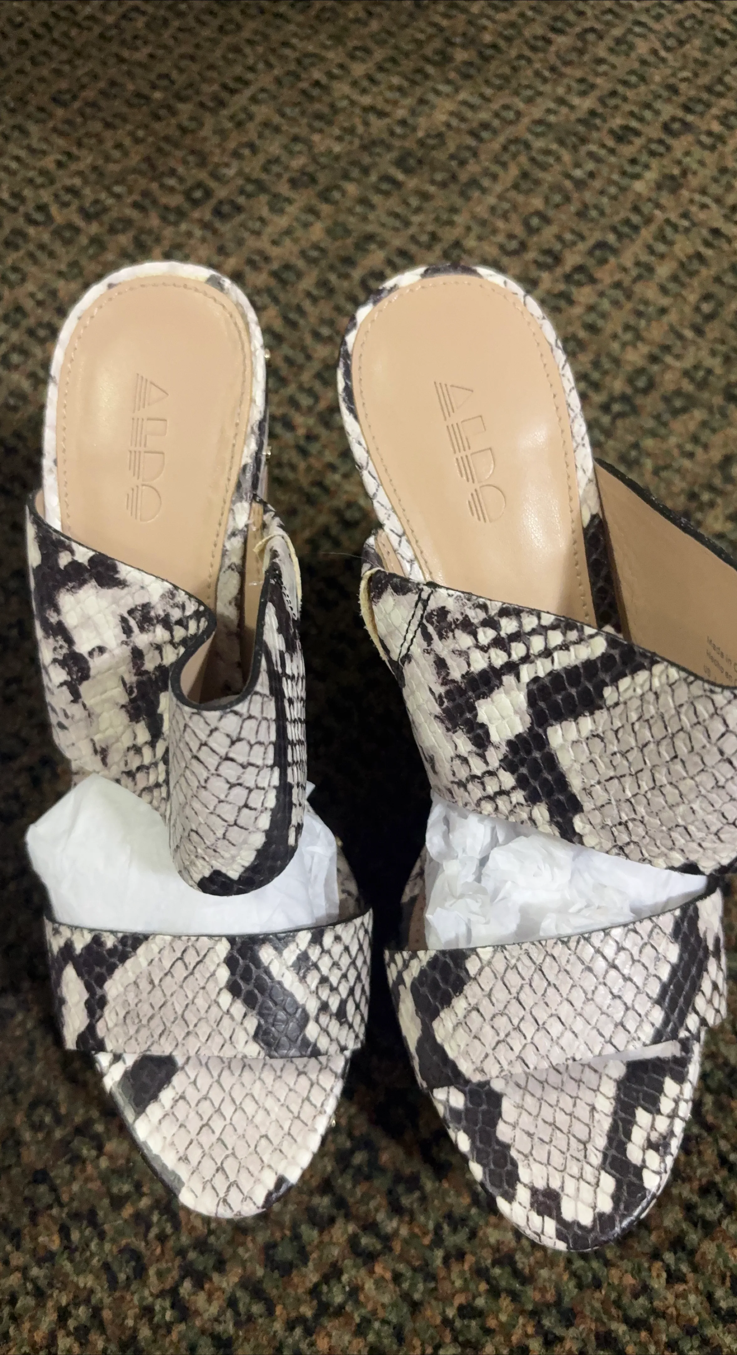 Cute Aldo wedge heels with a snakeskin print! They're a size 6 and in great condition. Perfect for adding a bit of flair to any outfit.