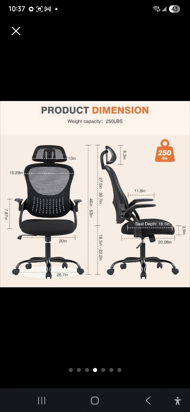 Sturdy 5-star base, supports up to 250 lbs
