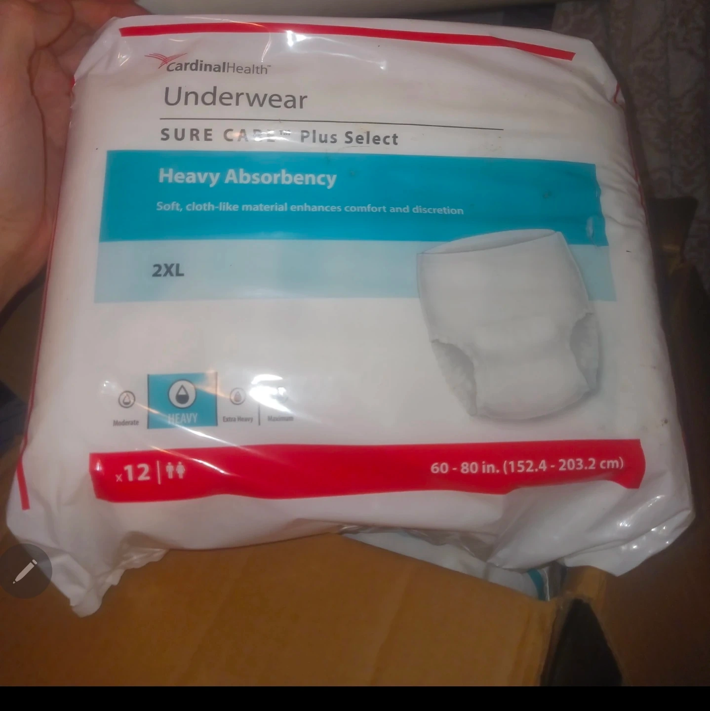Cardinal Health Sure Care Plus Select underwear in size 2XL. They feature heavy absorbency for comfort and discretion. The soft, cloth-like material enhances wearability. These are ideal for individuals needing reliable protection.