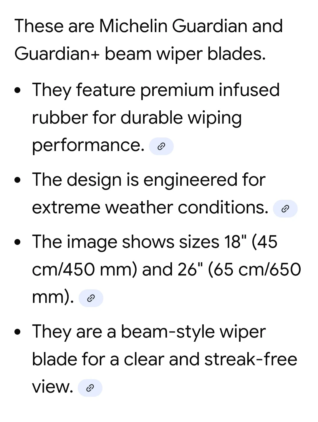 Buy & SellMichelin Guardian Beam Wiper Blades - 18" & 26"Michelin Guardian Beam Wiper Blades - 18" & 26"$30Selling a pair of NEW Michelin Guardian beam wiper blades, one 18" (45 cm) and one 26" (65 cm). Pick up near Islington and Bloor in Etobicoke ConditionNewWHERE TO MEETCheck LocationView MapSELLERverifiedalexIslington19713 reviews0 chats·0 favorites·10 viewsSEND CHAT TO SELLERHi alex! I’m interested in your listing.Hi alex! I’m interested in your listing.Get the Karrot app to chatSign In to chat