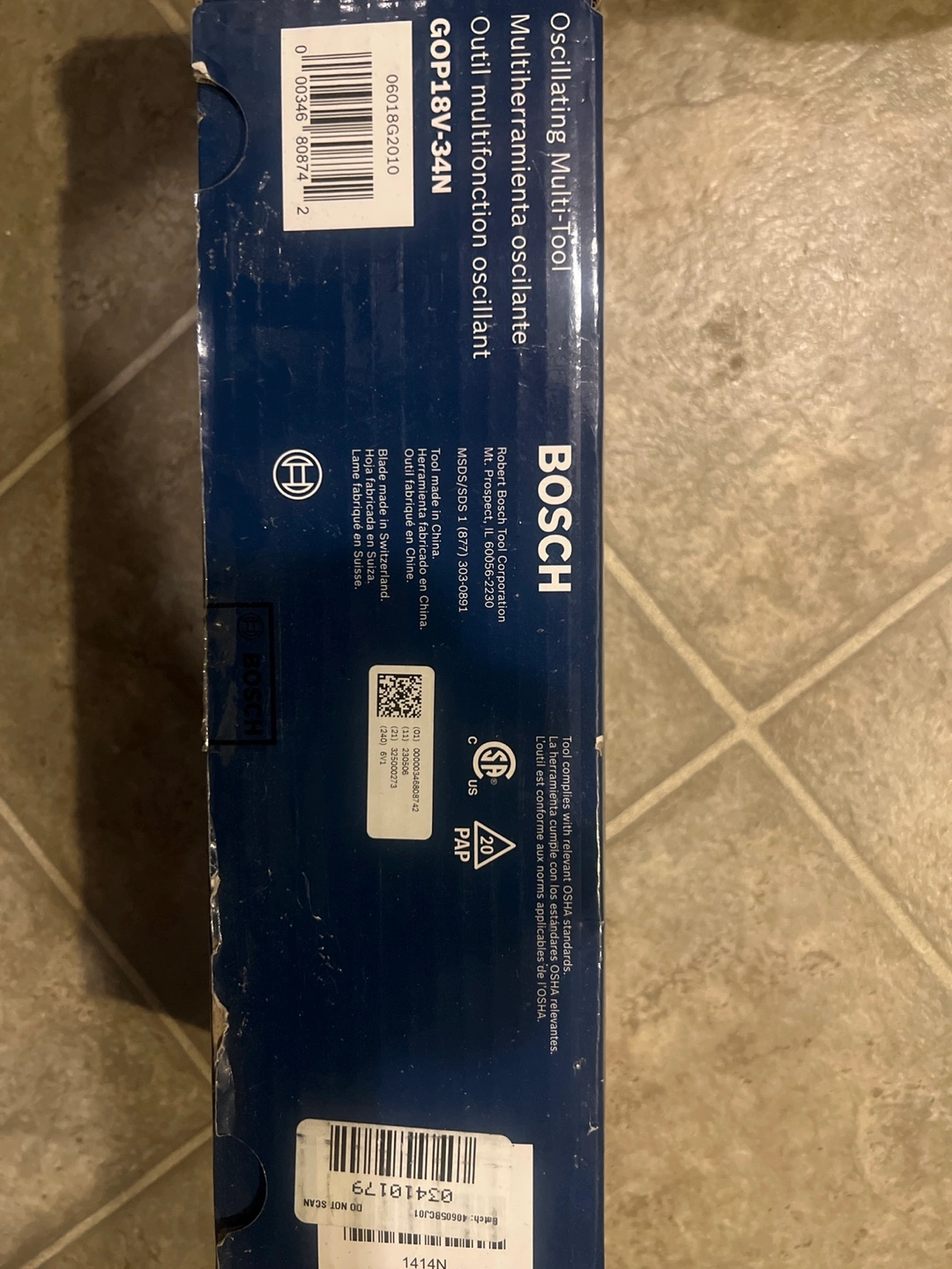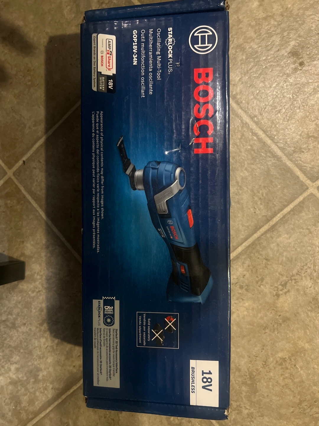 Selling a Bosch GOP18V-34N StarlockPlus Oscillating Multi-Tool. It's a versatile tool perfect for various tasks! Comes with the box and includes a plunge cutting blade. A great addition to any toolkit!