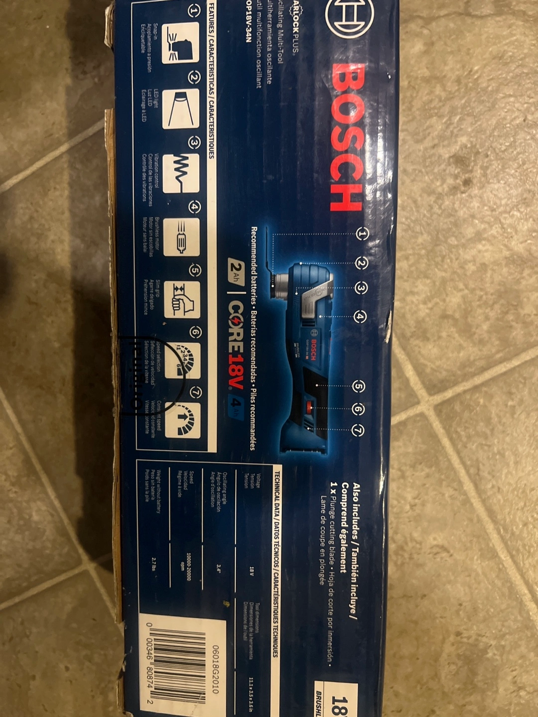 Selling a Bosch GOP18V-34N StarlockPlus Oscillating Multi-Tool. It's a versatile tool perfect for various tasks! Comes with the box and includes a plunge cutting blade. A great addition to any toolkit!