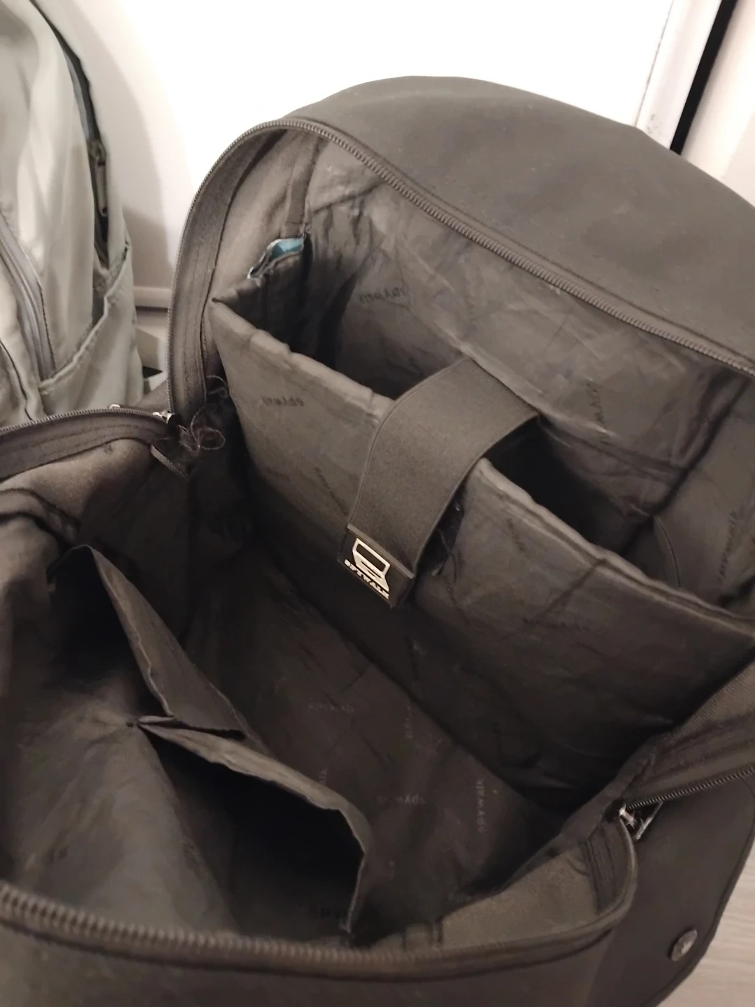 Selling a gently used Spywalk backpack in black. It's in okay condition and ready for a new owner! Lots of pockets for storage and organization.