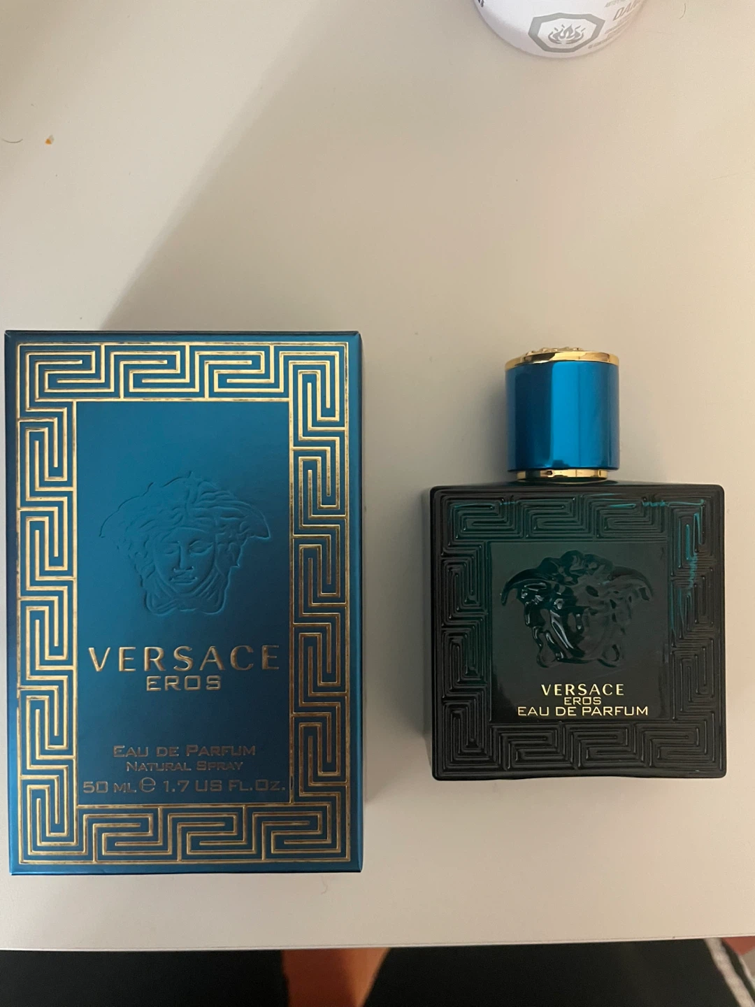 Versace Eros Eau de Parfum natural spray for men. Comes in a 50ml bottle, which is 1.7 US fl.oz. This scent is known for its fresh, woody, and oriental notes.