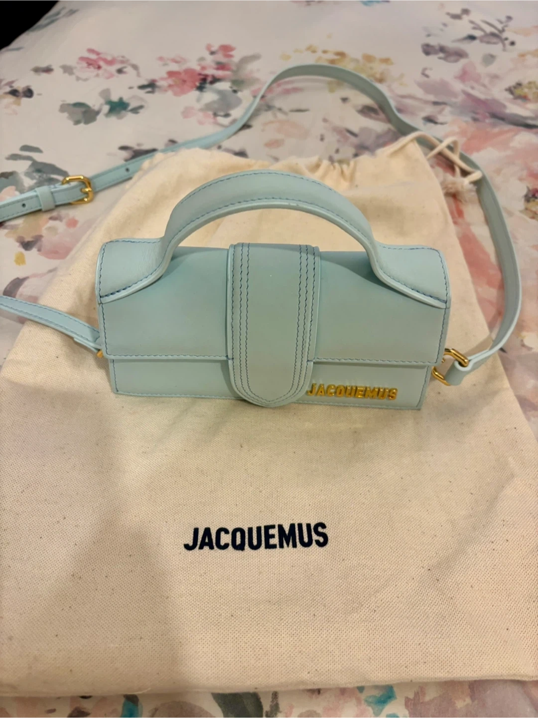 Selling a cute Jacquemus Le Chiquito bag in a lovely light blue colour! It's in great condition and comes with its original dust bag. Perfect for adding a touch of style to any outfit!