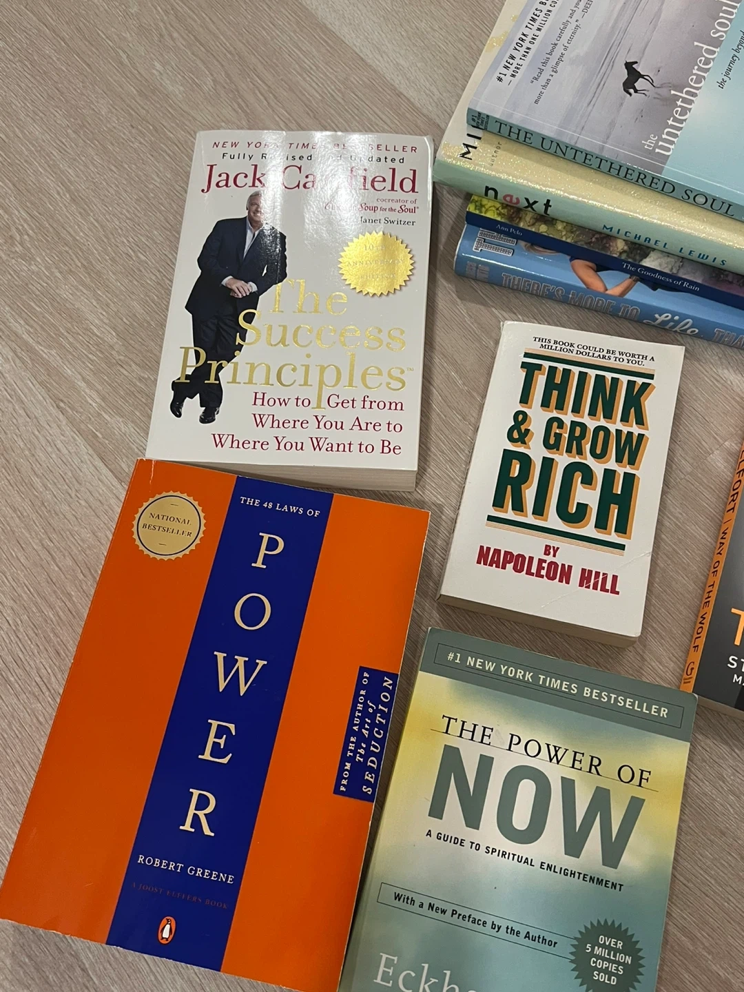 This bundle includes popular titles like "The Success Principles," "Think & Grow Rich," "The Power of Now," and "Way of the Wolf." They're great reads for anyone interested in personal development and business strategy. Various authors and publishers are represented in this collection. Discounts available when buying bundles. $10 each.