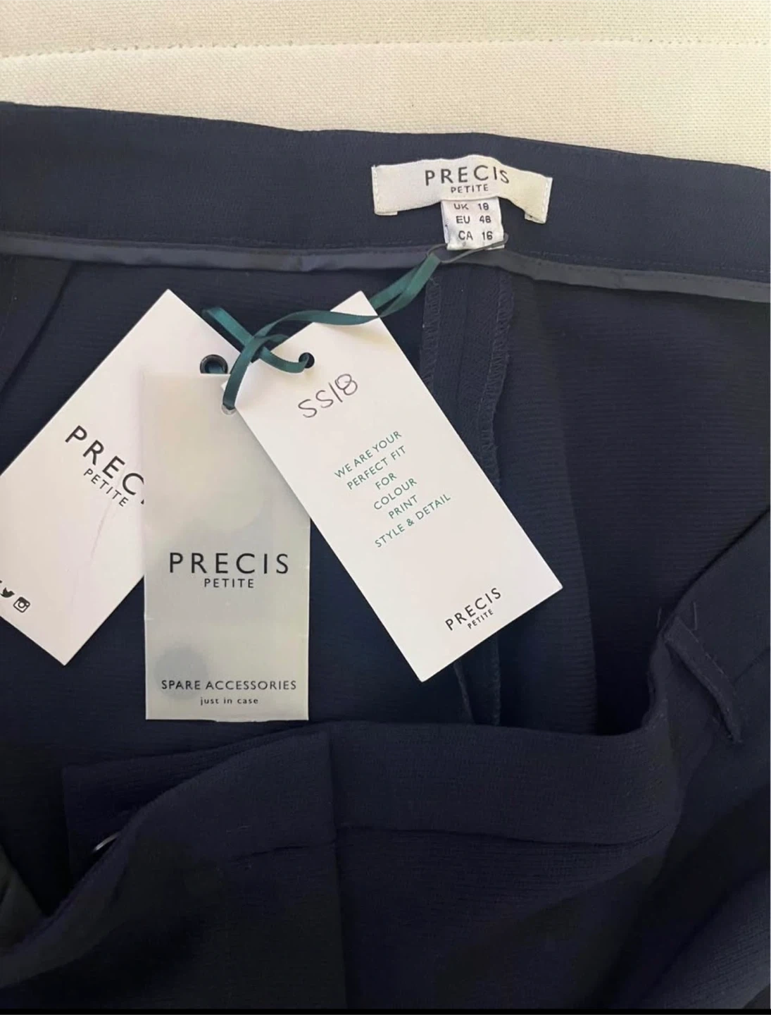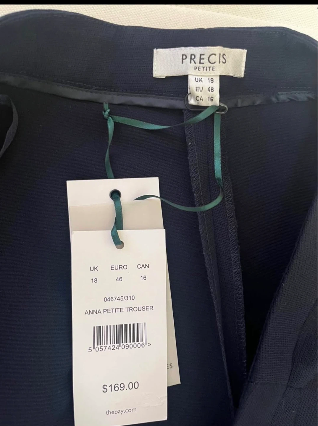 These navy Anna Petite Trousers from Precis Petite are a size CA 16. They're perfect for a polished look. They feature a tailored fit and a classic design. Brand new with tags, originally bought for $170