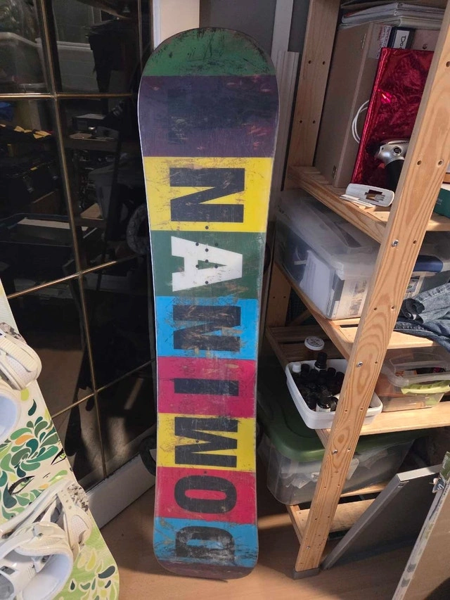 Selling a used Burton Dominant snowboard, a great board for intermediate riders looking to progress in the park and all mountain riding. The snowboard is used and has some cosmetic wear but is in good working condition. Cash accepted.