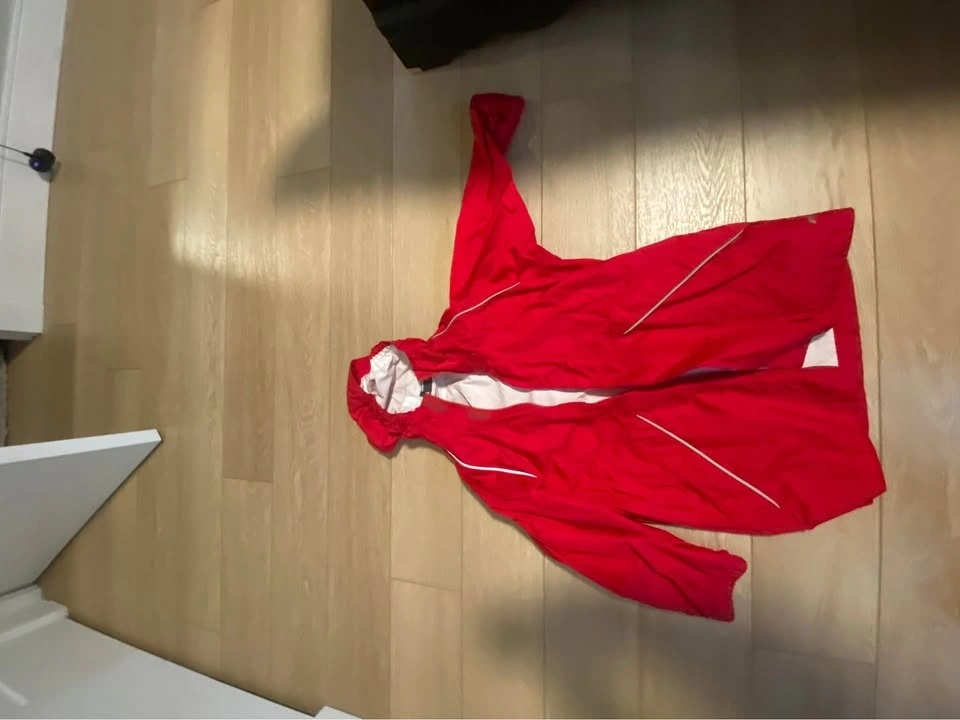 All rain jackets with no holes and still waterproof. North Face flower print rain jacket size 10 (fits small) - EUC $15 - SOLD. MEC Red size 8 - EUC $15. MEC blue size 8 - GUC $5. SNO leaf print size 10 - $15: warm and cozy, water resistant, not stellar waterproofing but very warm. Paradox purple size 10-12: GUC $5. Gap windbreaker blue - $10: EUC (barely worn) lightweight water resistant SOLD. Lynn valley porch pick up.