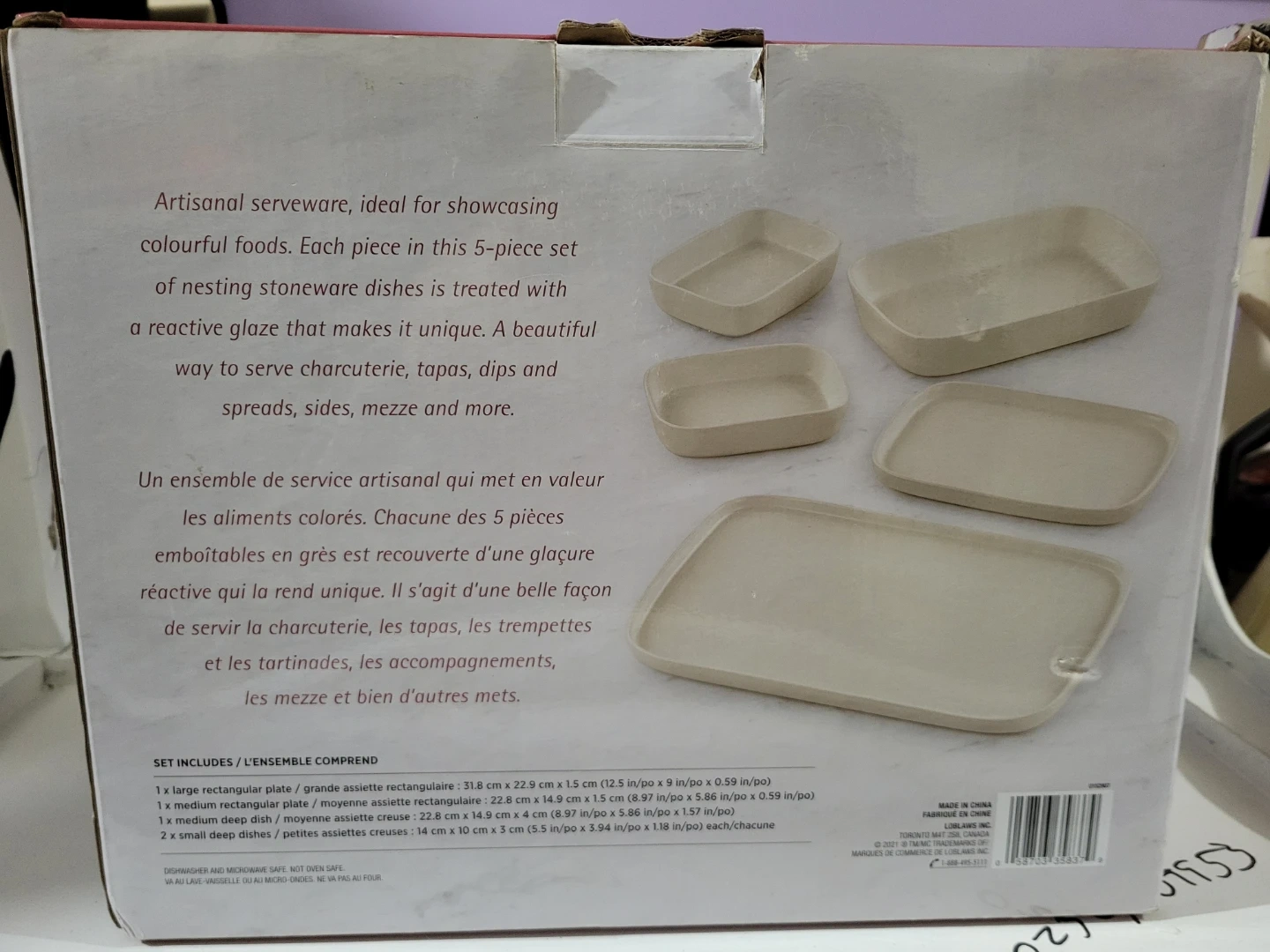 I'm selling a brand new President's Choice serveware set! This stoneware set is perfect for showcasing colourful foods, tapas, dips, and more,