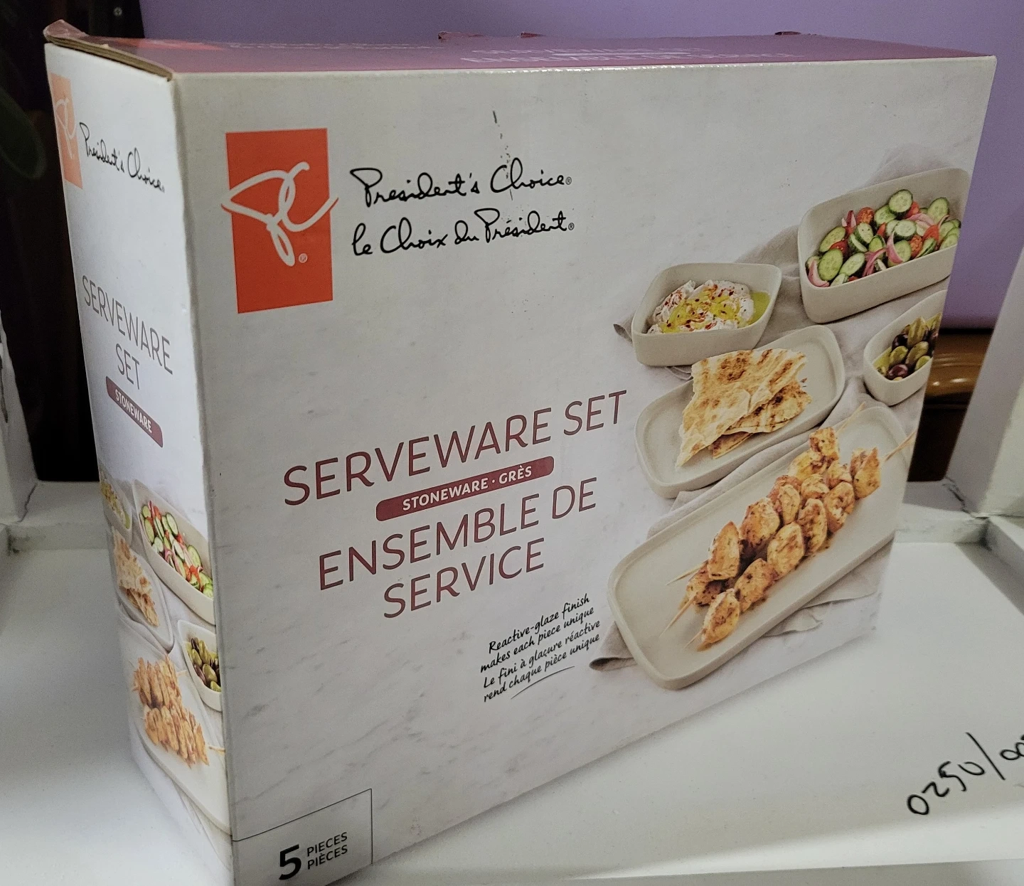 I'm selling a brand new President's Choice serveware set! This stoneware set is perfect for showcasing colourful foods, tapas, dips, and more,