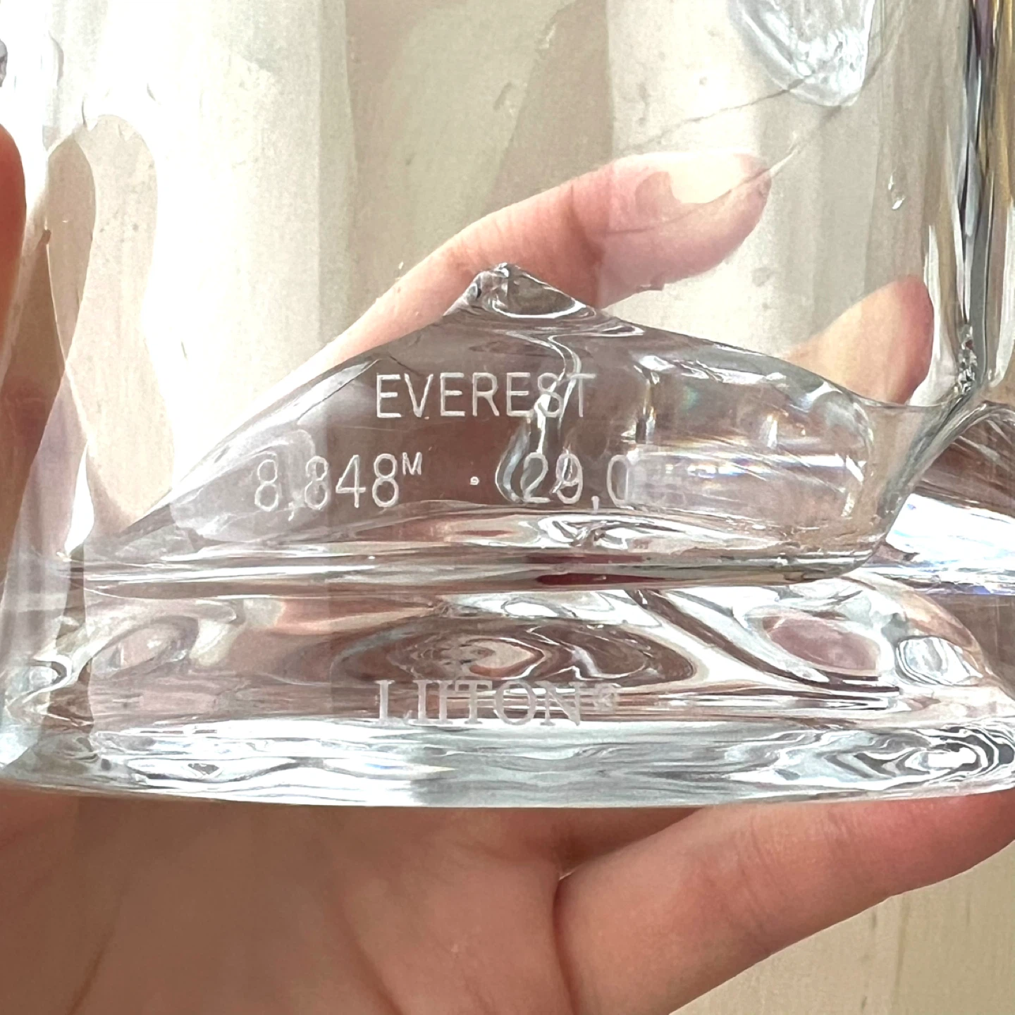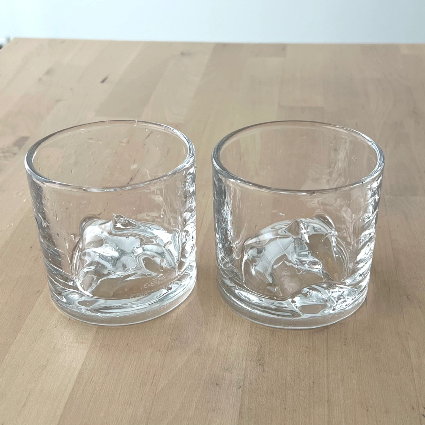These unique whiskey glasses feature an embedded mountain design at the base. They're made of clear glass and come as a set of two.