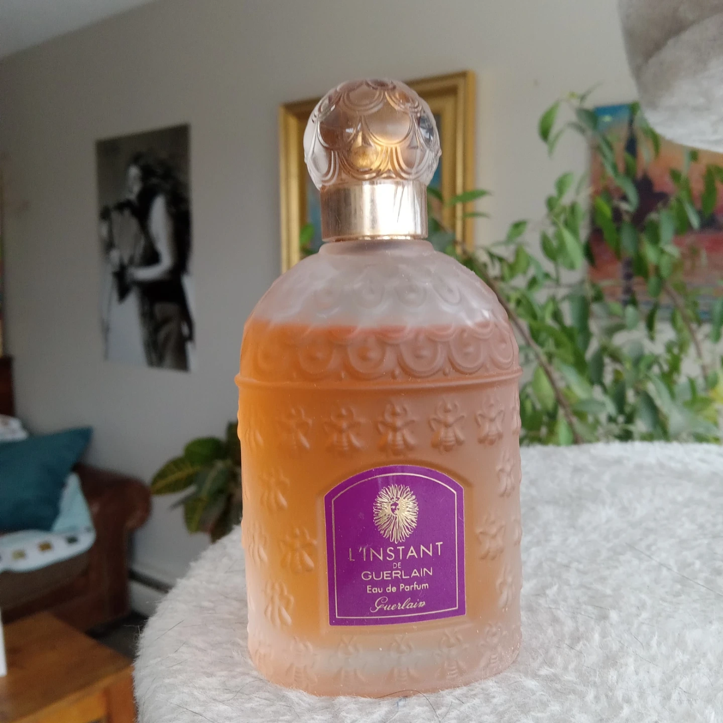 This is an older packaging (flatter bee bottle) and formula of L'instant eau de parfum which is now being sold in the heart-shaped stopper bottle in stores. It is a tester and the cap is cracked (but still functional). I never dropped it so I'm not sure why the cap just randomly cracked like this but calgary homes are so dry, maybe that's why? It is missing a little as you can see on the photo. It comes in a white non descript tester box if you want it. I always keep it in there. Priced to sell. Please see my other listings! Thank you for reading.