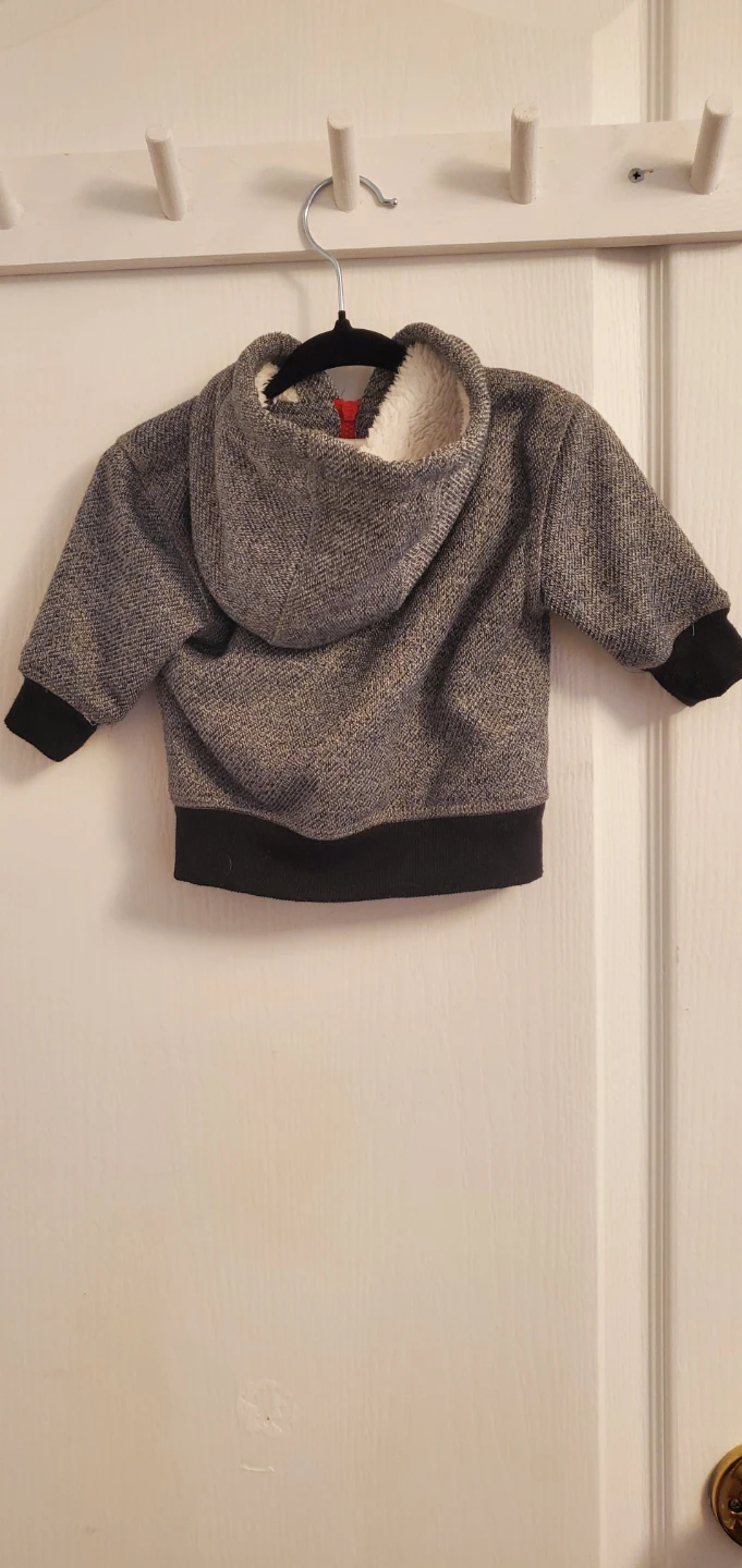 Here's an adorable little zip-up hoodie for your little one! It's grey with the number 86 on the front, and a cute bear logo near the bottom. It's in great condition and perfect for keeping your baby warm on cooler days. Size is 0-3 months