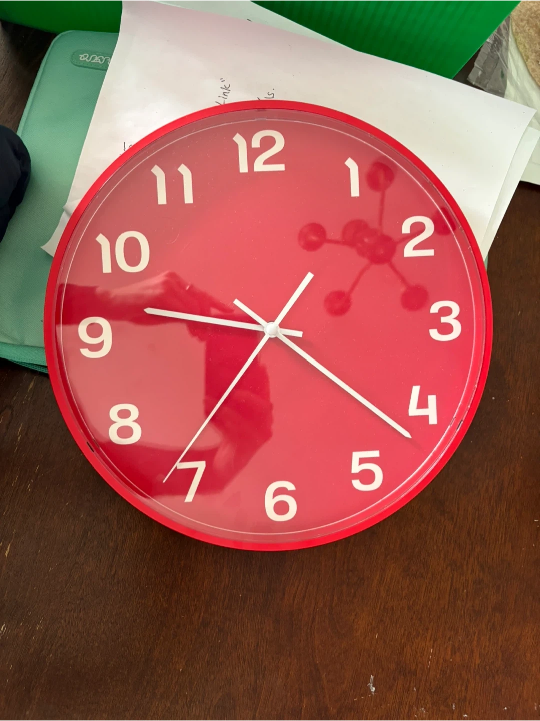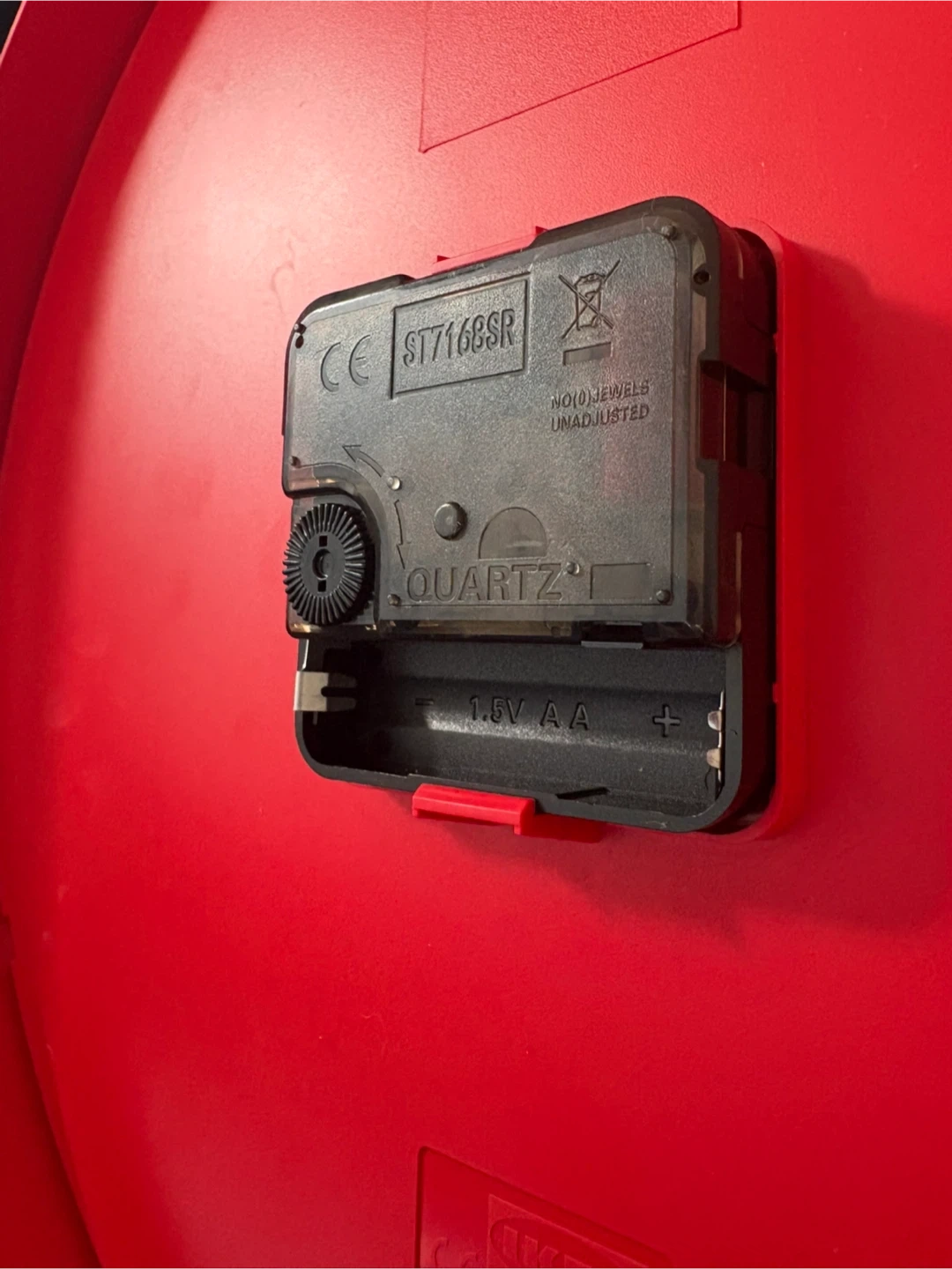 Pickup location: Bathurst & Finch (North York). Selling my red wall clock. It's in great shape, no damage or anything bad. You can hear a slight ticking, so it’s not completely silent. But it’s low. Dimensions: Width: 11 inches. Depth: 1.5 inches Take’s 1 AA battery.