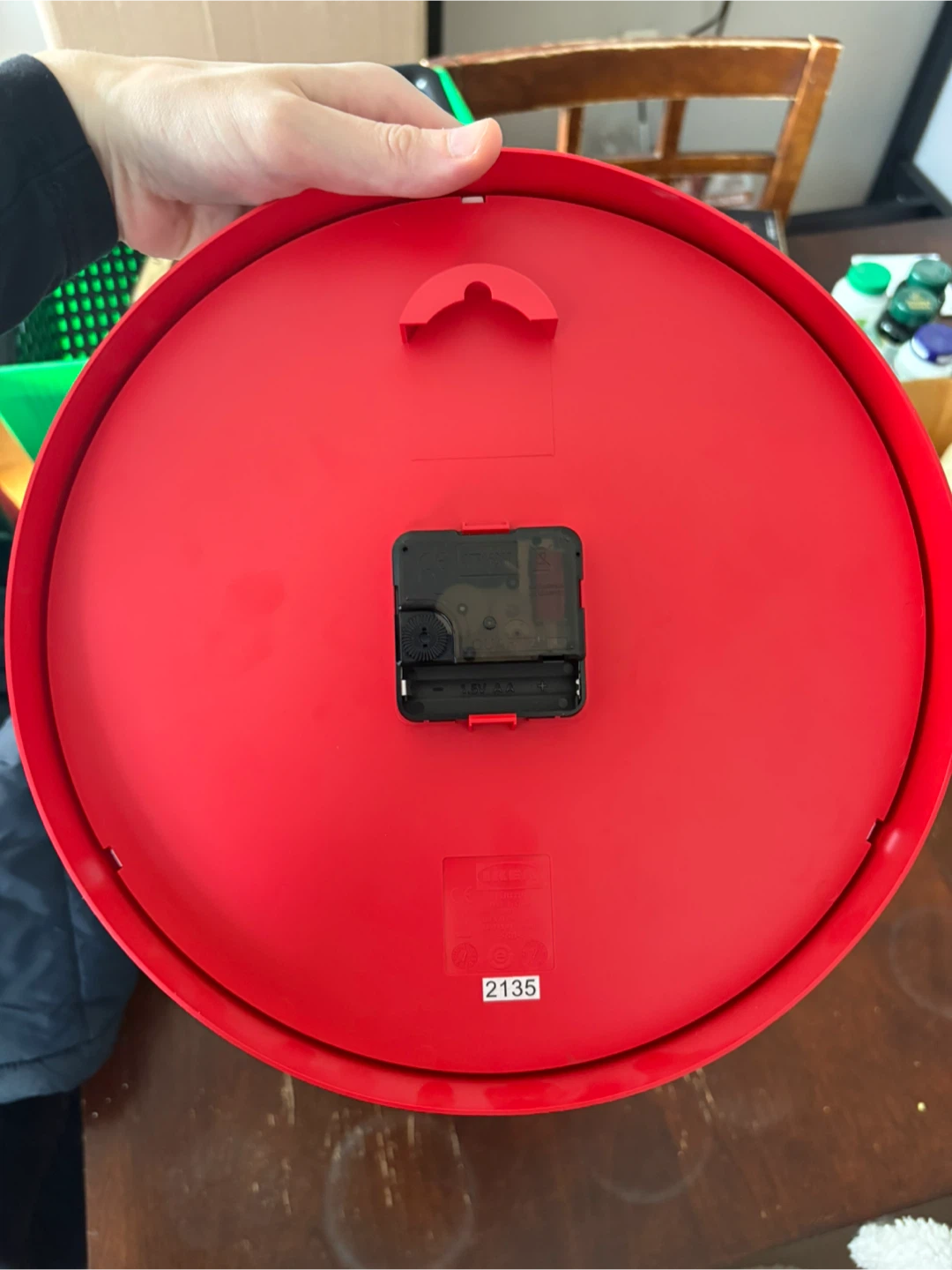 Pickup location: Bathurst & Finch (North York). Selling my red wall clock. It's in great shape, no damage or anything bad. You can hear a slight ticking, so it’s not completely silent. But it’s low. Dimensions: Width: 11 inches. Depth: 1.5 inches Take’s 1 AA battery.