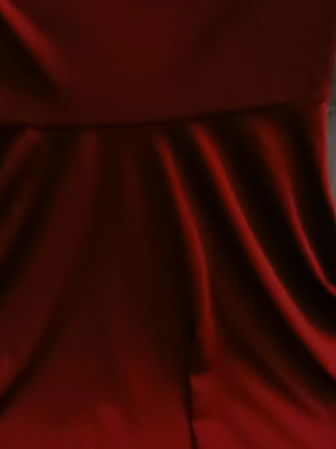 This is a stylish red fit and flare dress. It has a flattering A-line silhouette with a short, ruffled hem. Perfect for a night out or a special occasion!