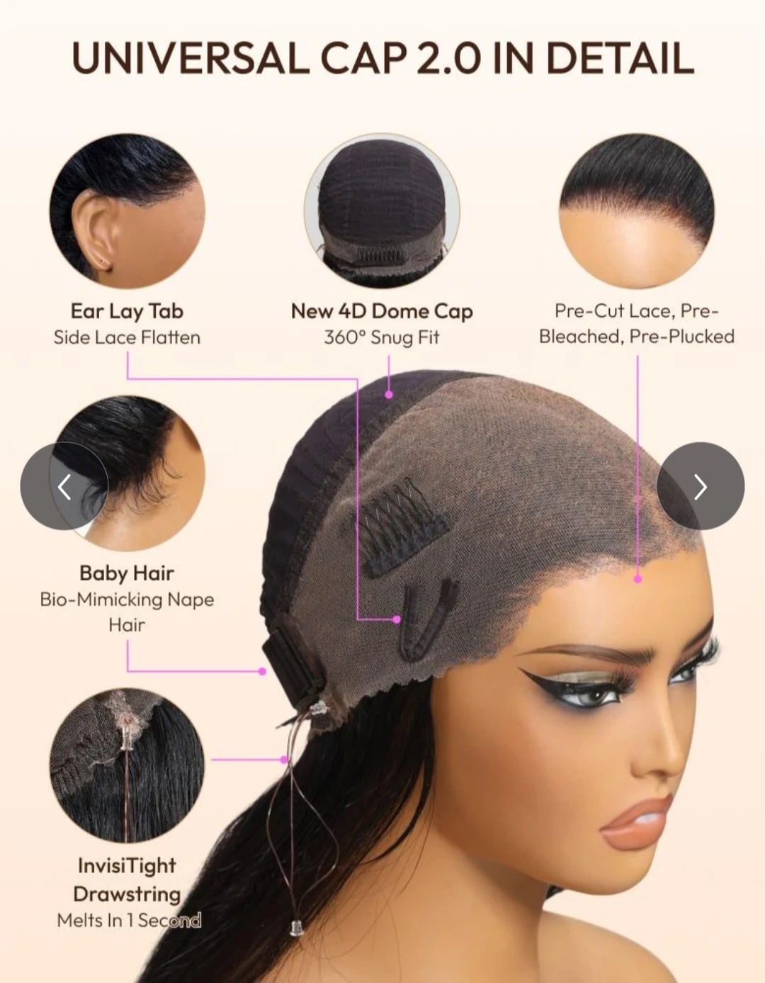 100% Human hair. High-quality wig featuring a full 360 lace, drawstrin and ear lay tab for a secure sizing and natural fit. It's designed with a curly texture for a voluminous look. Offers lightweight comfort and a firm, secure hold.