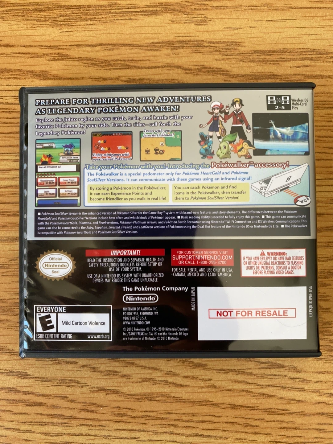 This is the Nintendo DS game Pokemon SoulSilver Version. It includes the game cartridge and instruction booklet. It's compatible with Nintendo DS and DS Lite systems.