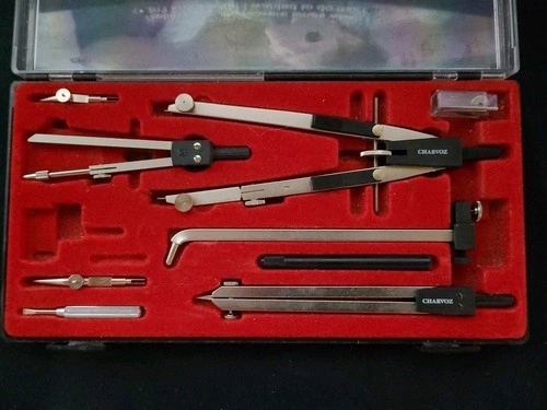 Discover the precision of Charvoz with this vintage drafting tool set, a treasure for enthusiasts of engineering and technical drawing. Crafted in Germany, this kit exemplifies the quality and durability expected from a brand with a storied history in drafting instruments. Ideal for collectors and professionals alike, this set offers a glimpse into the craftsmanship of a bygone era. Whether used for creating detailed blueprints or adding to a collection of scientific memorabilia, it serves as a versatile and timeless addition to any assortment.