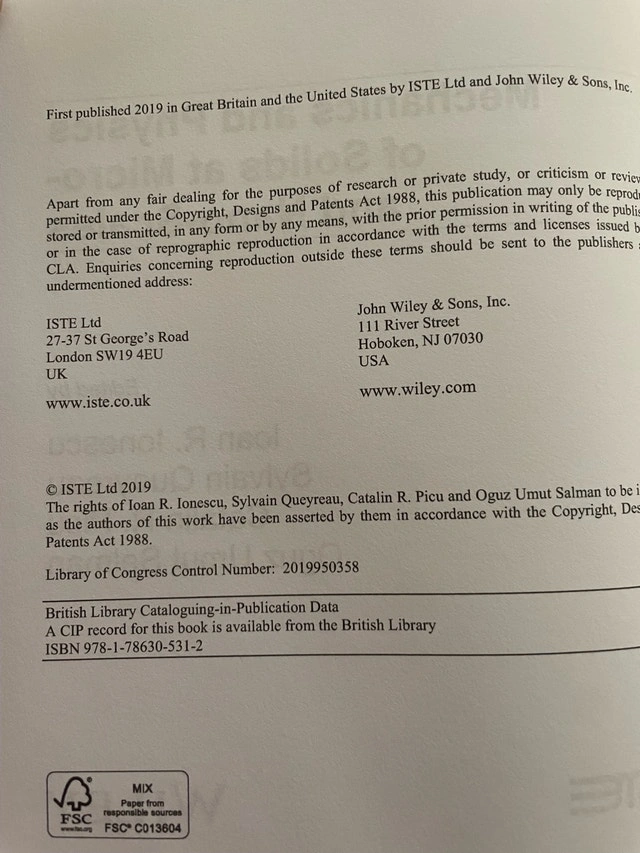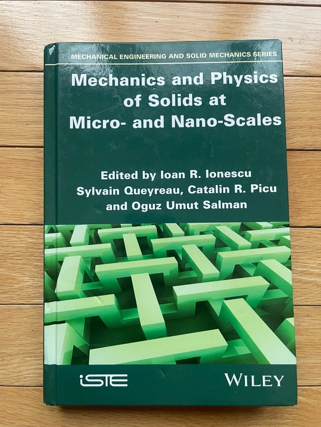 This book, "Mechanics and Physics of Solids at Micro- and Nano-Scales", is part of the Mechanical Engineering and Solid Mechanics Series. It covers a wide range of scientific and technological topics. Edited by Ioan R. Ionescu, Sylvain Queyreau, Catalin R. Picu, and Oguz Umut Salman. Published by ISTE, Wiley, first published in 2019. ISBN: 978-1-78630-531-2. The book is new with no markings, but has slight scuffs on the hardcover corners. If the ad is up, it's available! Cash is accepted.