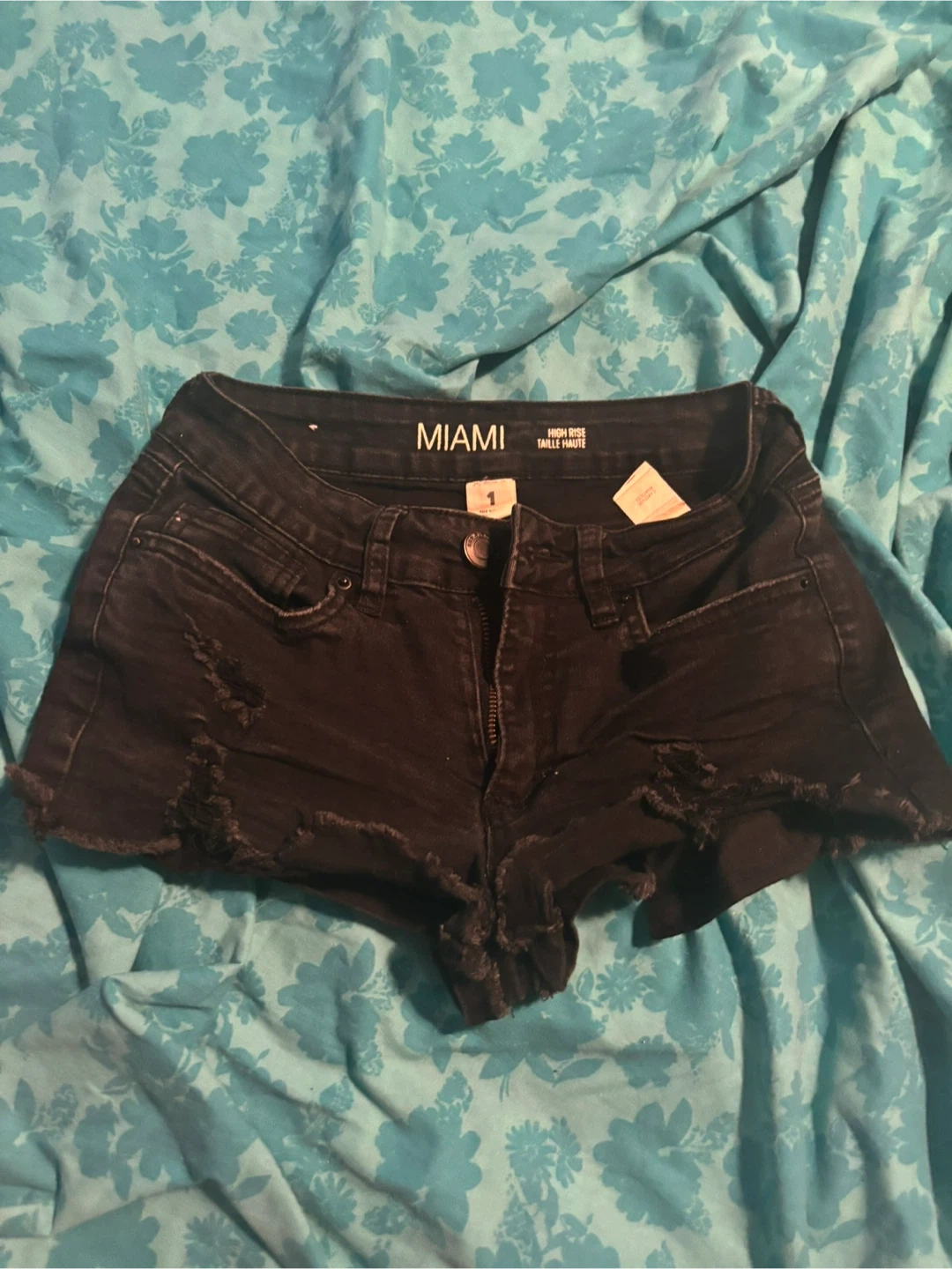 I'm selling a pair of Miami brand black denim shorts! They are high rise and in size 1. They're in good condition and ready for a new owner!
