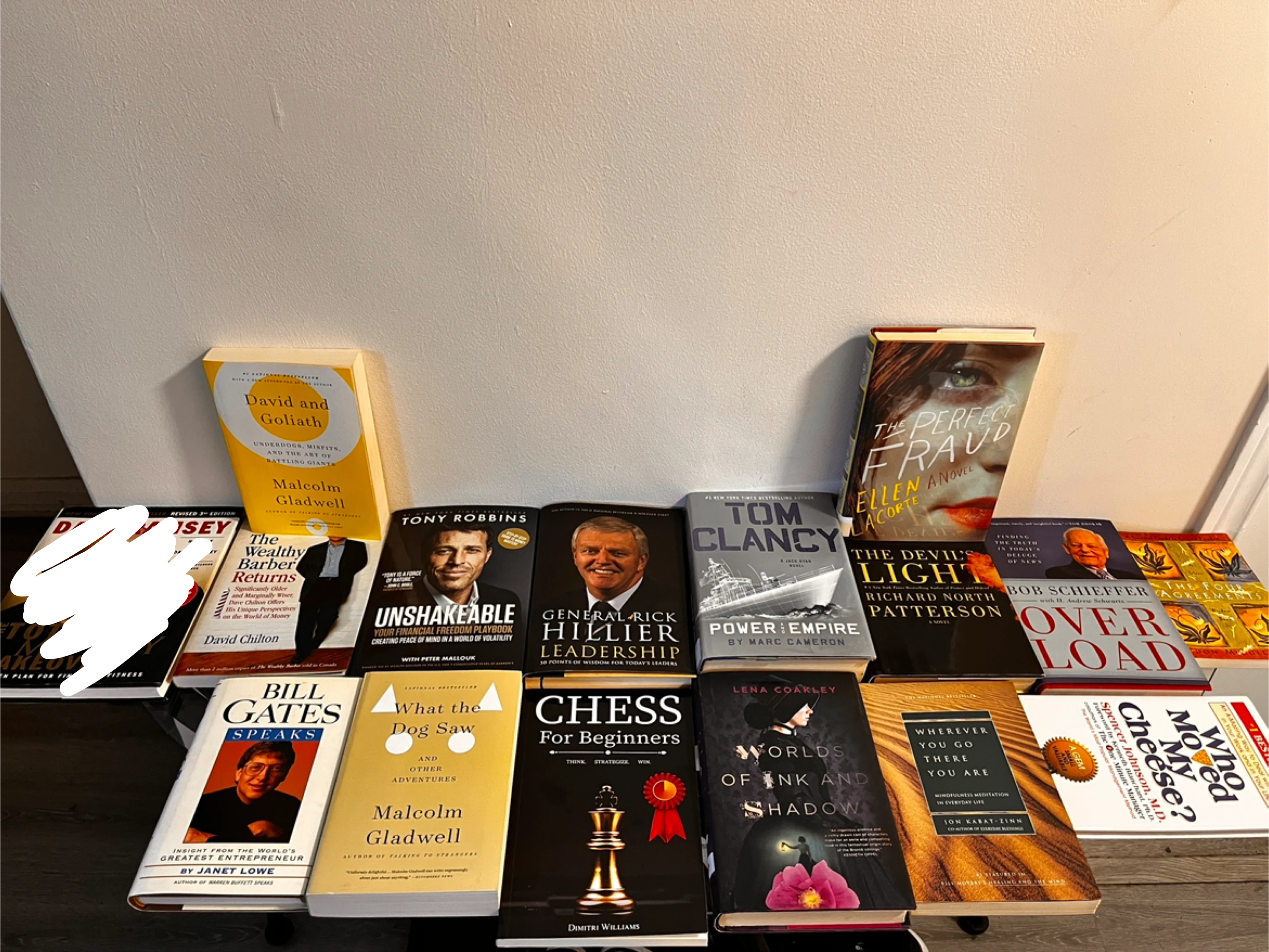 I Tony Robins is $15. Everything else is from $5-$10. Discount for multiple purchases. This lot includes a variety of books covering business, personal development, and fiction. It's a great collection for anyone.
