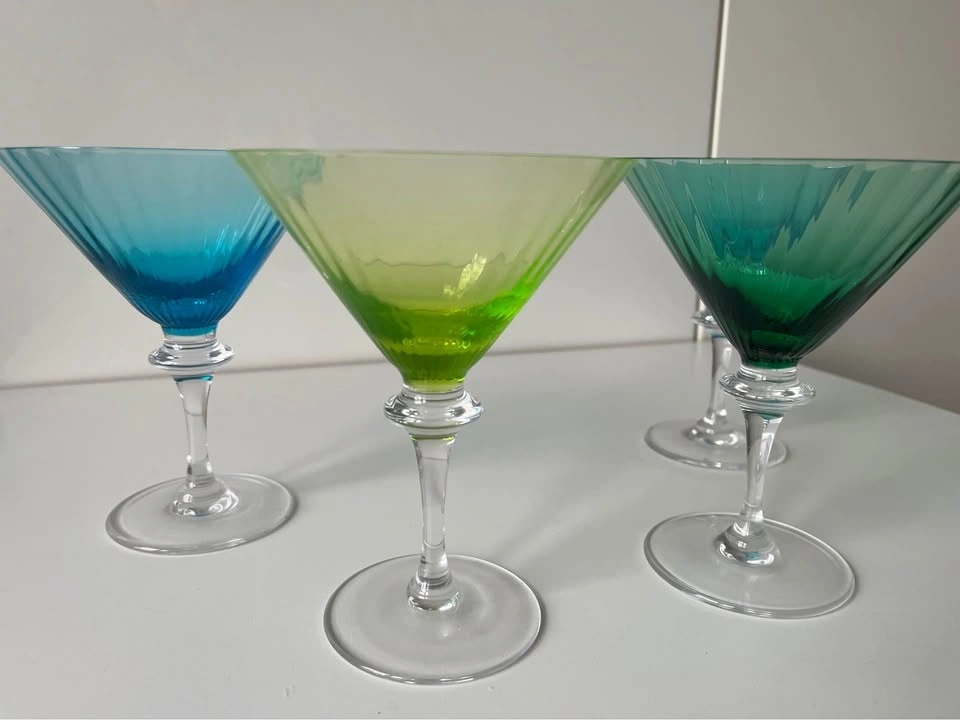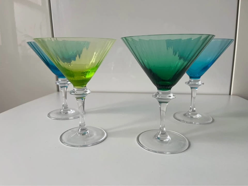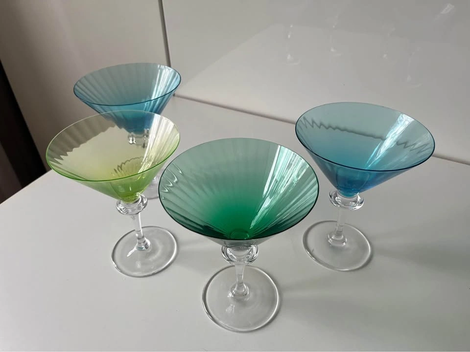 4 Cristal Sevres Colorful Martini Glasses Vintage