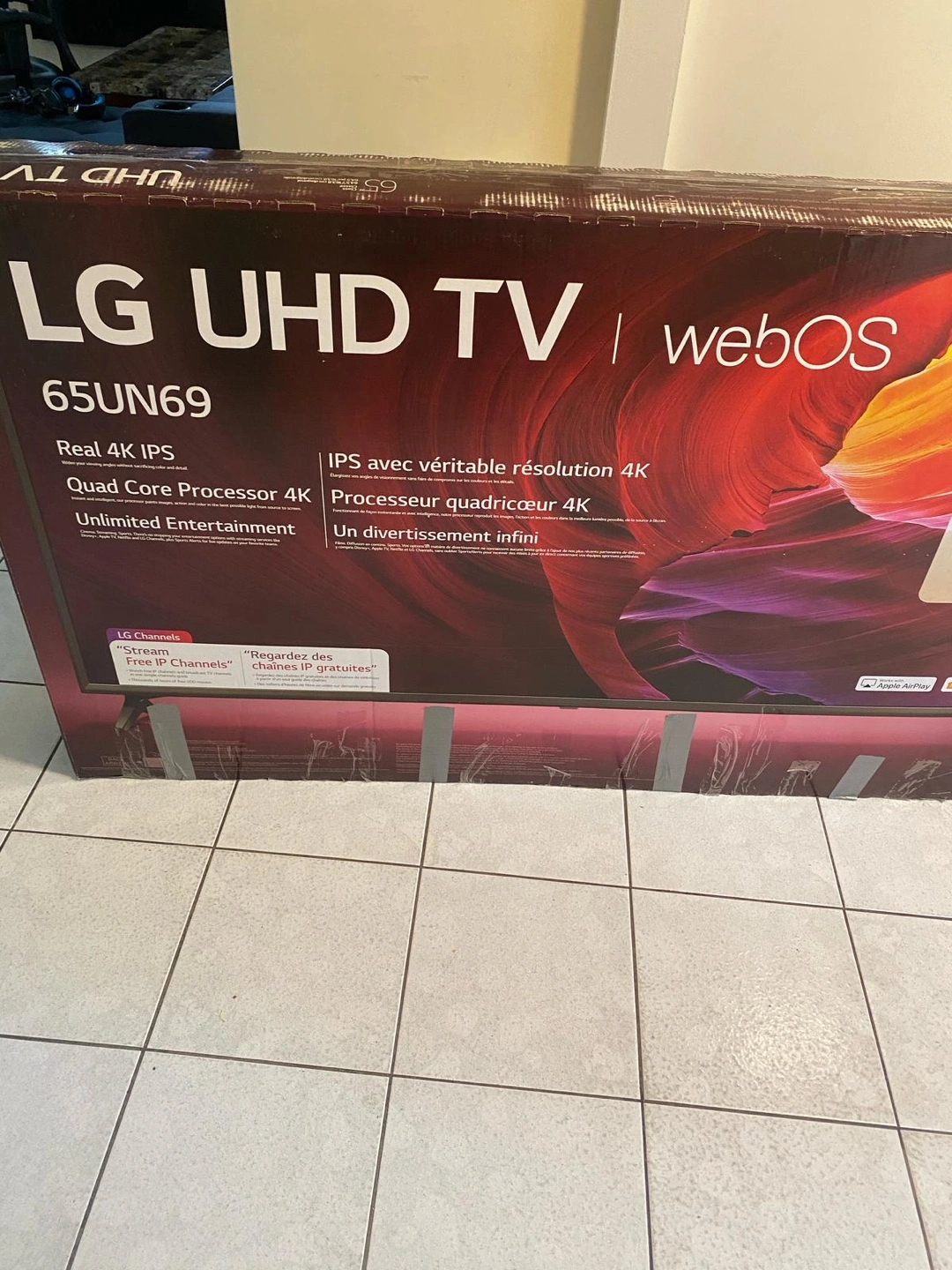 65-inch LG UHD TV. Excellent picture quality. Smart TV functionality. Includes original box. Quad core processor. WebOS.