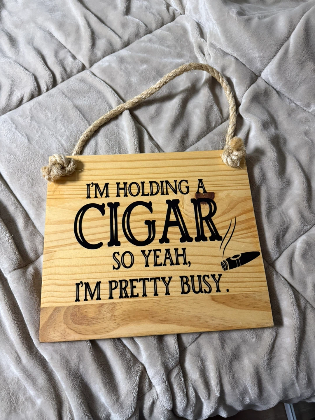 1 / 31 / 3Buy & SellWooden Sign "I'm Holding a Cigar"Wooden Sign "I'm Holding a Cigar"$40This wooden sign reads "I'M HOLDING A CIGAR SO YEAH, I'M PRETTY BUSY." It's made of wood and has a rope hanger. Perfect for a cigar room!ConditionNewWHERE TO MEETCheck LocationView MapSELLERverifiedCrystalCummings1195 reviews0 chats·0 favorites·2 viewsSEND CHAT TO SELLERHi Crystal! I’m interested in your listing.Hi Crystal! I’m interested in your listing.Get the Karrot app to chatSign In to chat