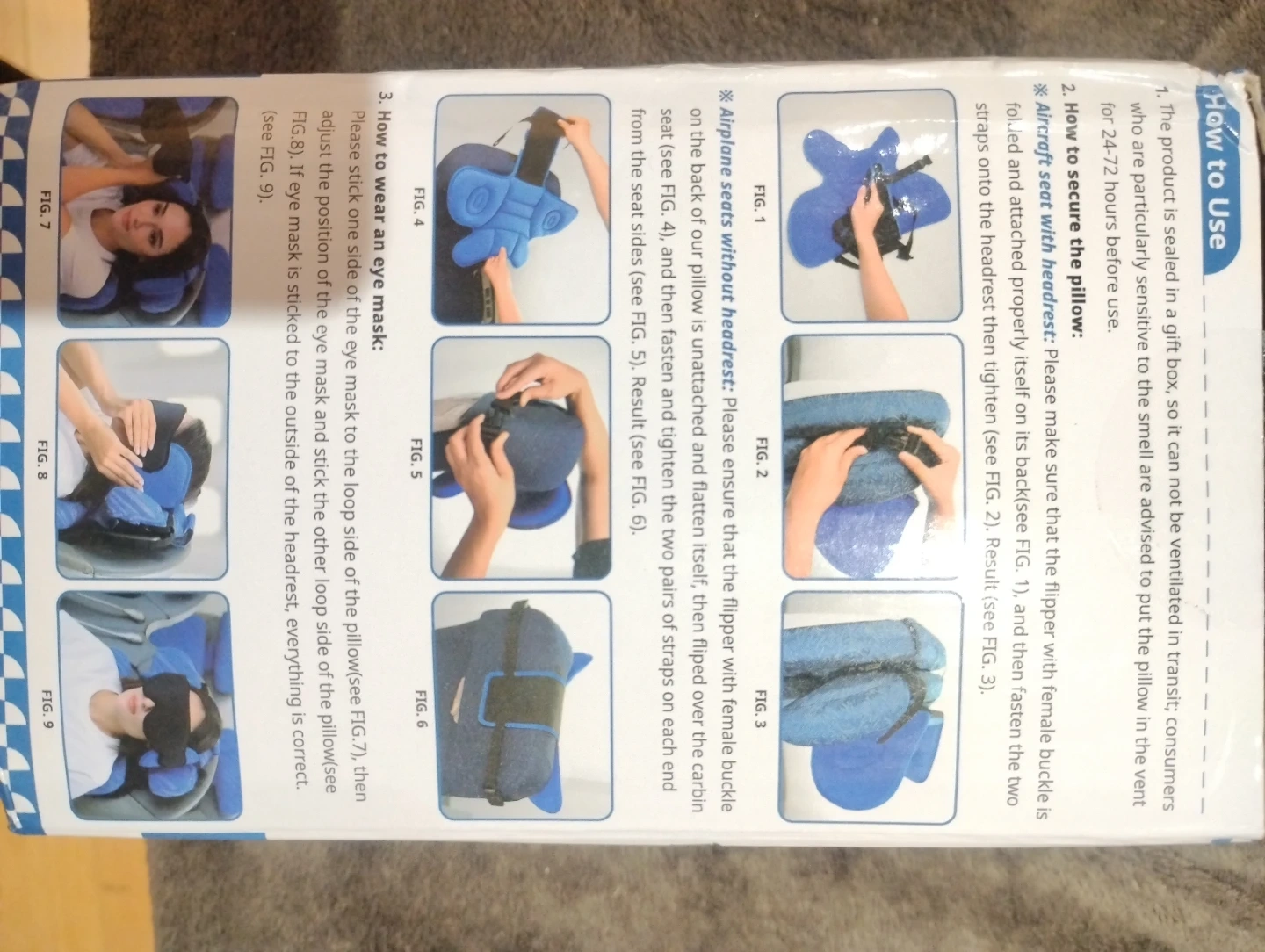 This is a Sarisun Travel Pillow, model SSNH002. It's designed for comfort during travel. The pillow is blue and comes with an eye mask for a better rest. It's useful for anyone who travels frequently.