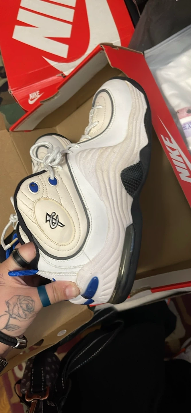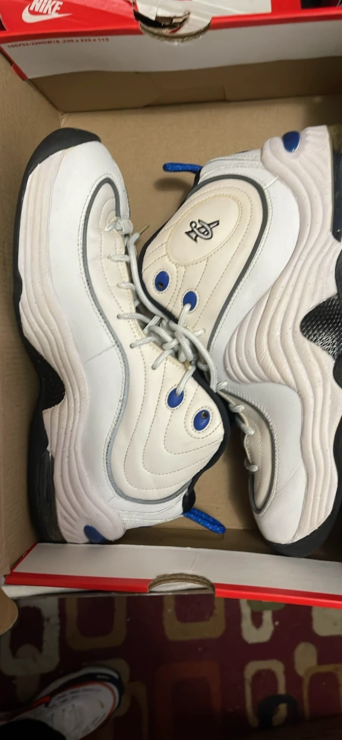 Selling a pair of Nike Air Penny 2 sneakers in a white and black colorway! They show some signs of wear, but are still in good condition. These sneakers are a classic and would be a great addition to any collection