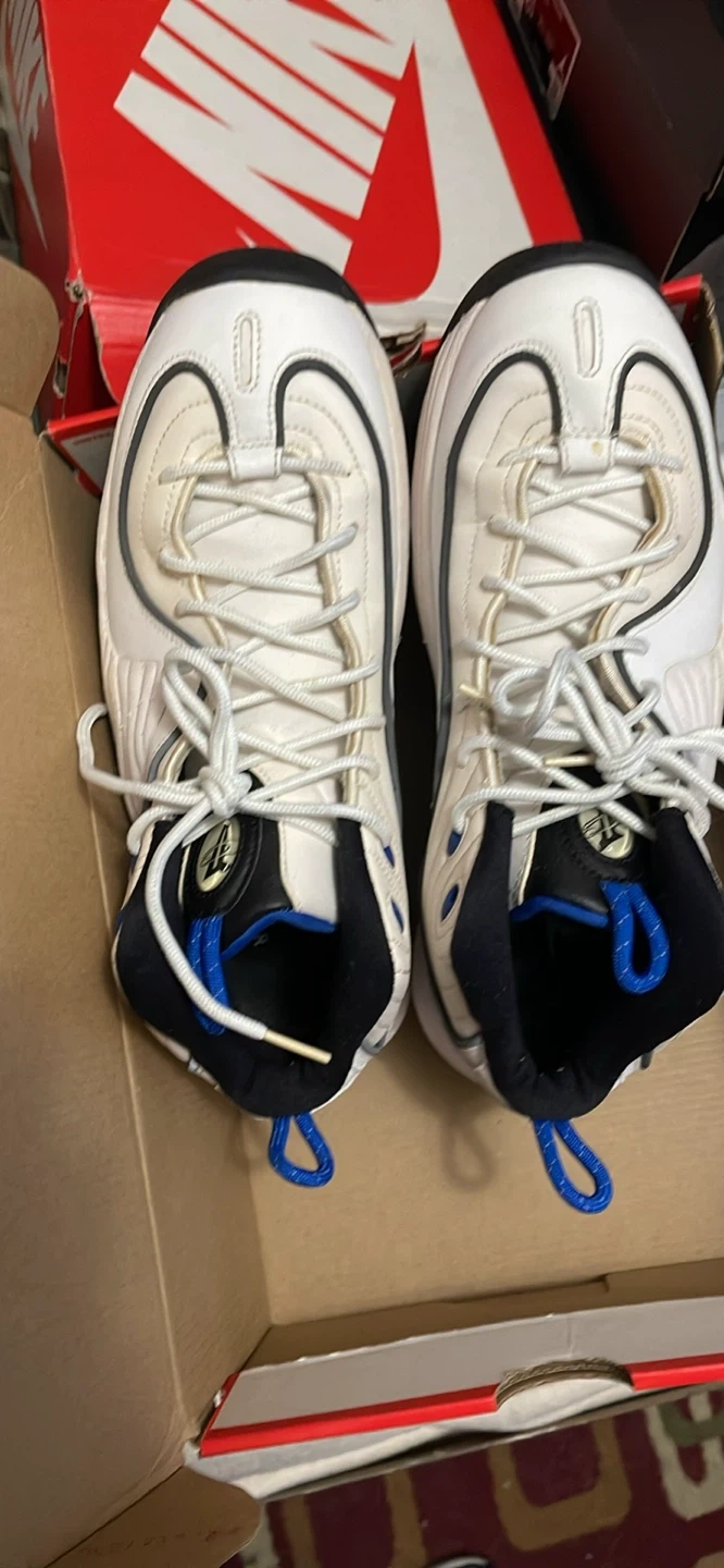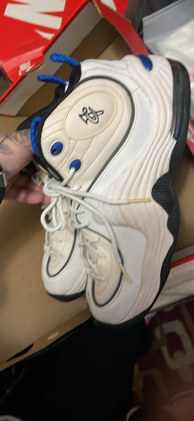 Selling a pair of Nike Air Penny 2 sneakers in a white and black colorway! They show some signs of wear, but are still in good condition. These sneakers are a classic and would be a great addition to any collection