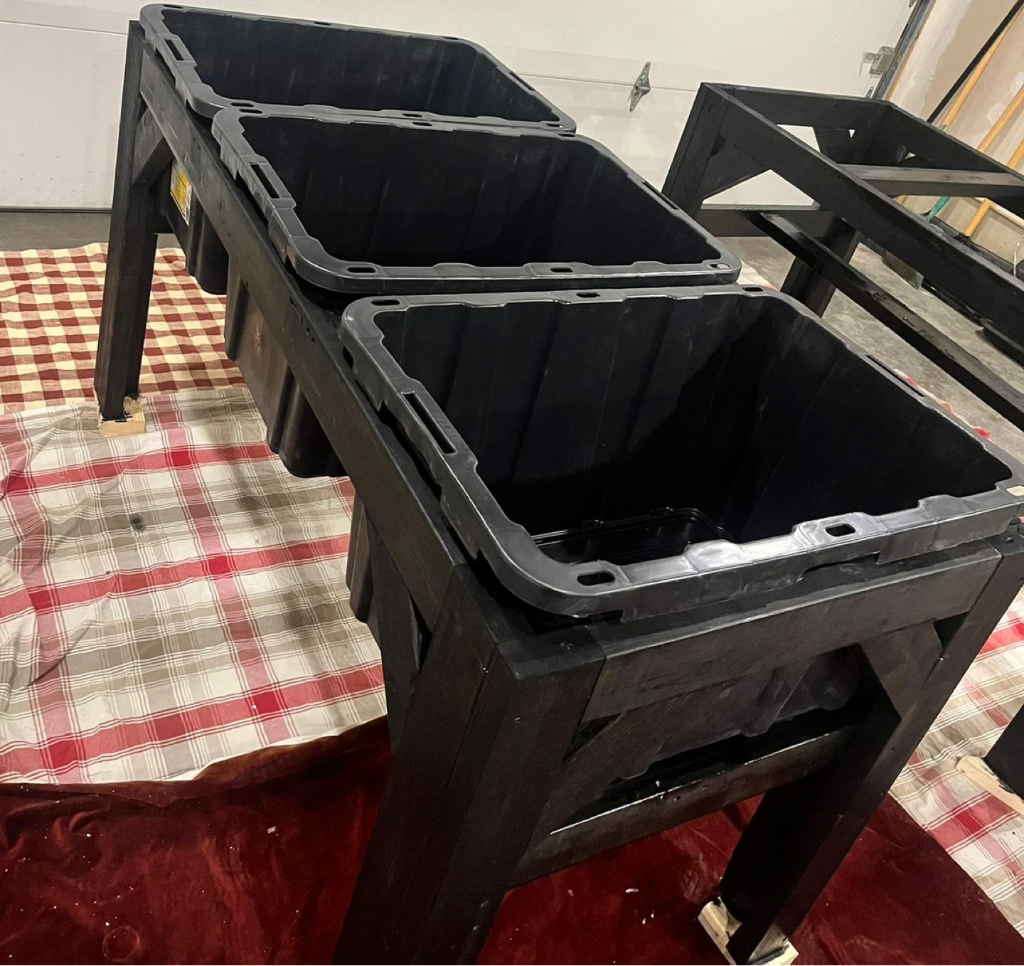 Raised bed gardens with plastic totes and its cover is included. If you want them on wheels $40 extra. We make on order. 1 week required.