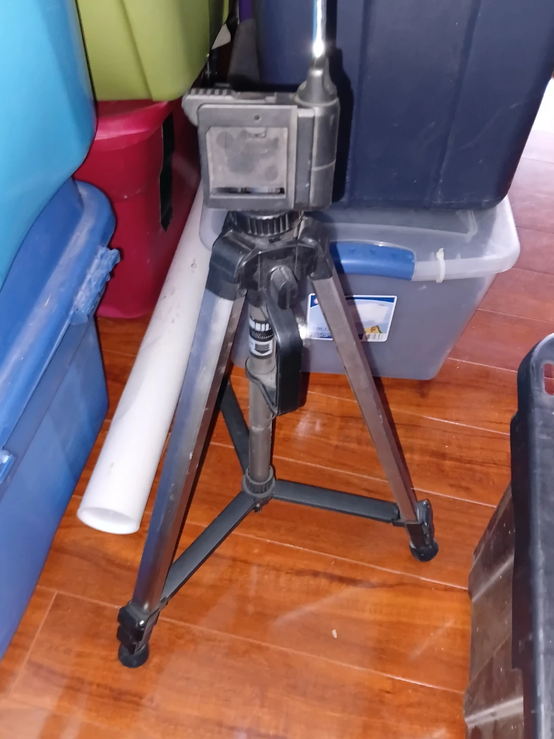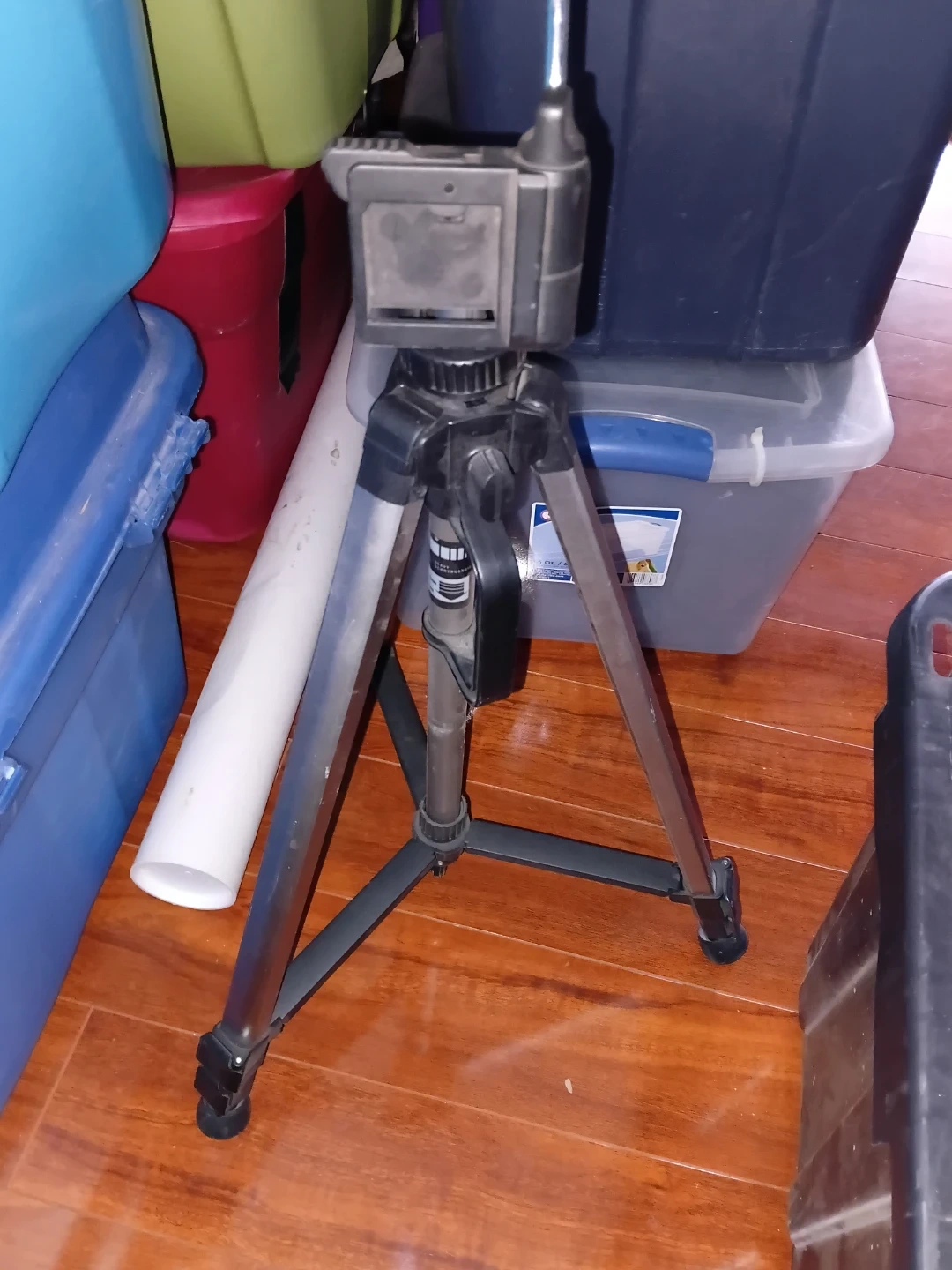 This is a used tripod, good for steady shots. It's adjustable and made of metal and plastic. Works with most cameras and phones. Easy to set up for photography!