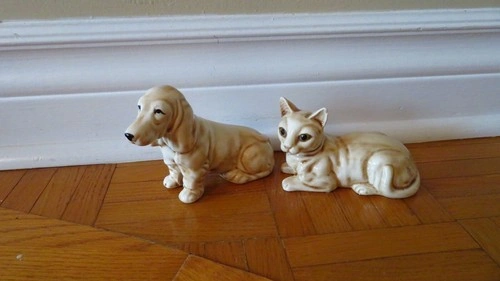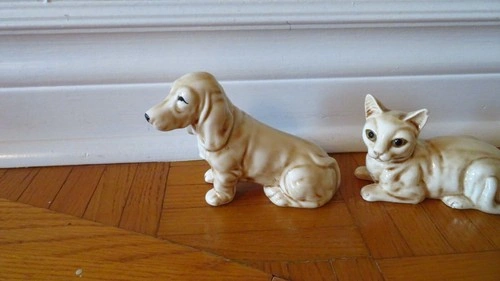 VTG MCM Porcelain Bassett Hound & Cat Statue - Japan