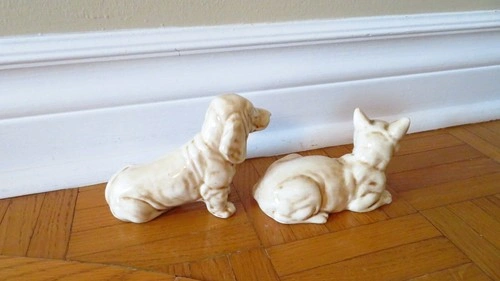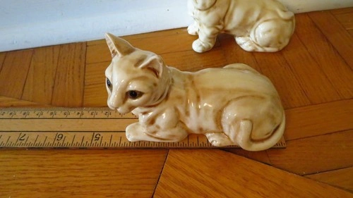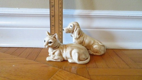 VTG MCM Porcelain Bassett Hound & Cat Statue - Japan