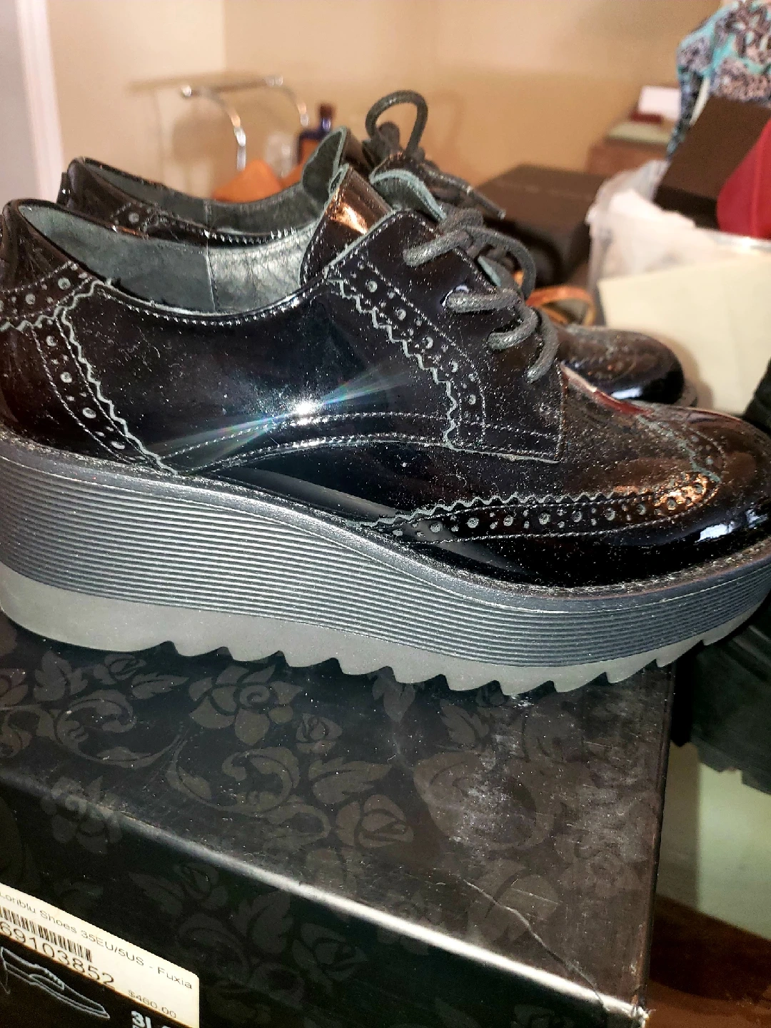 Selling a pair of Browns shoes in black. They are a size 36EU, which is equivalent to a US size 6. The shoes come with the original box