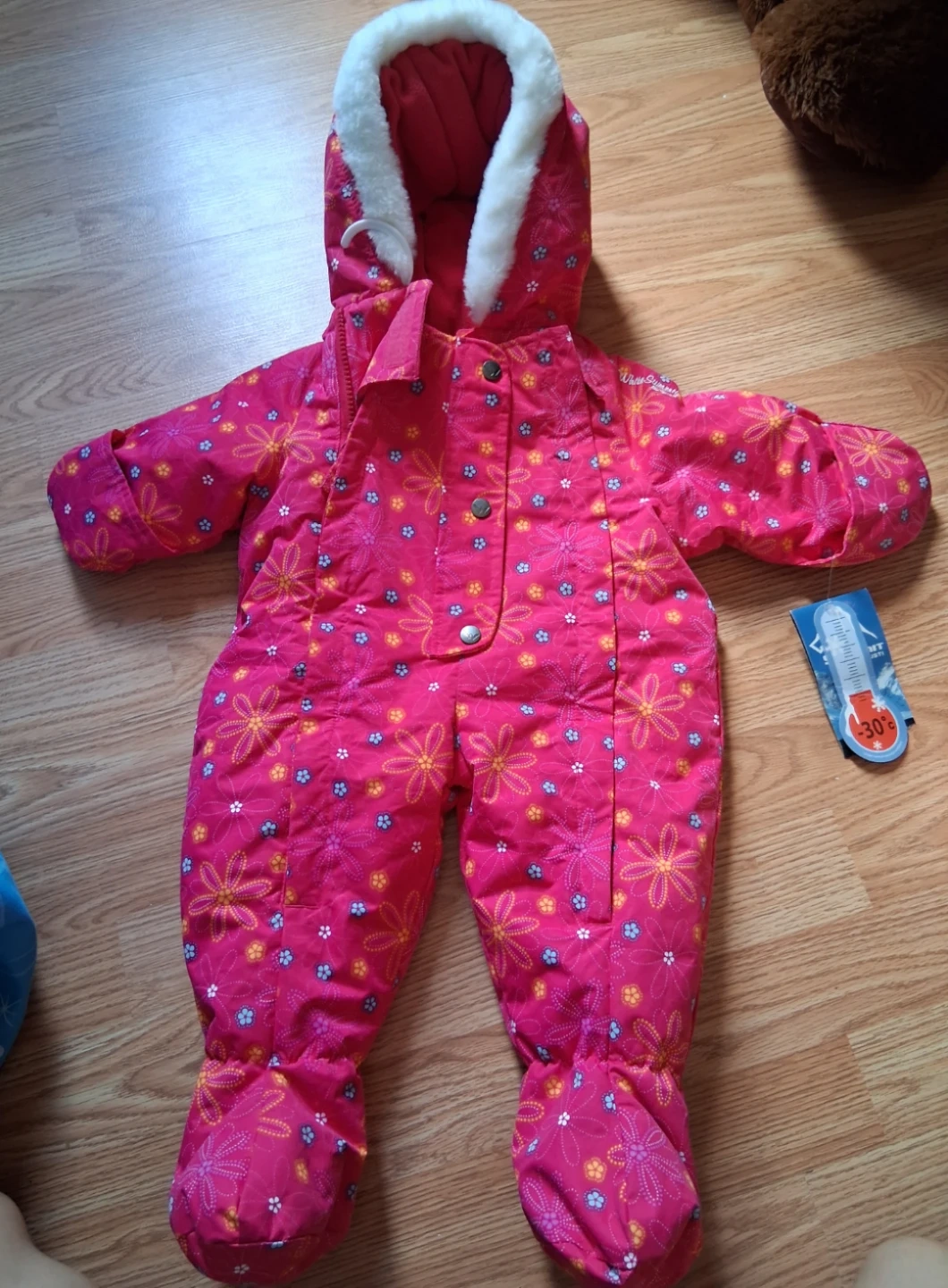 This pink floral snowsuit is from White Summit. It features a cozy fleece lining and a faux fur-trimmed hood for extra warmth. The full zip front makes for easy dressing. Built to keep little ones warm during winter outings!