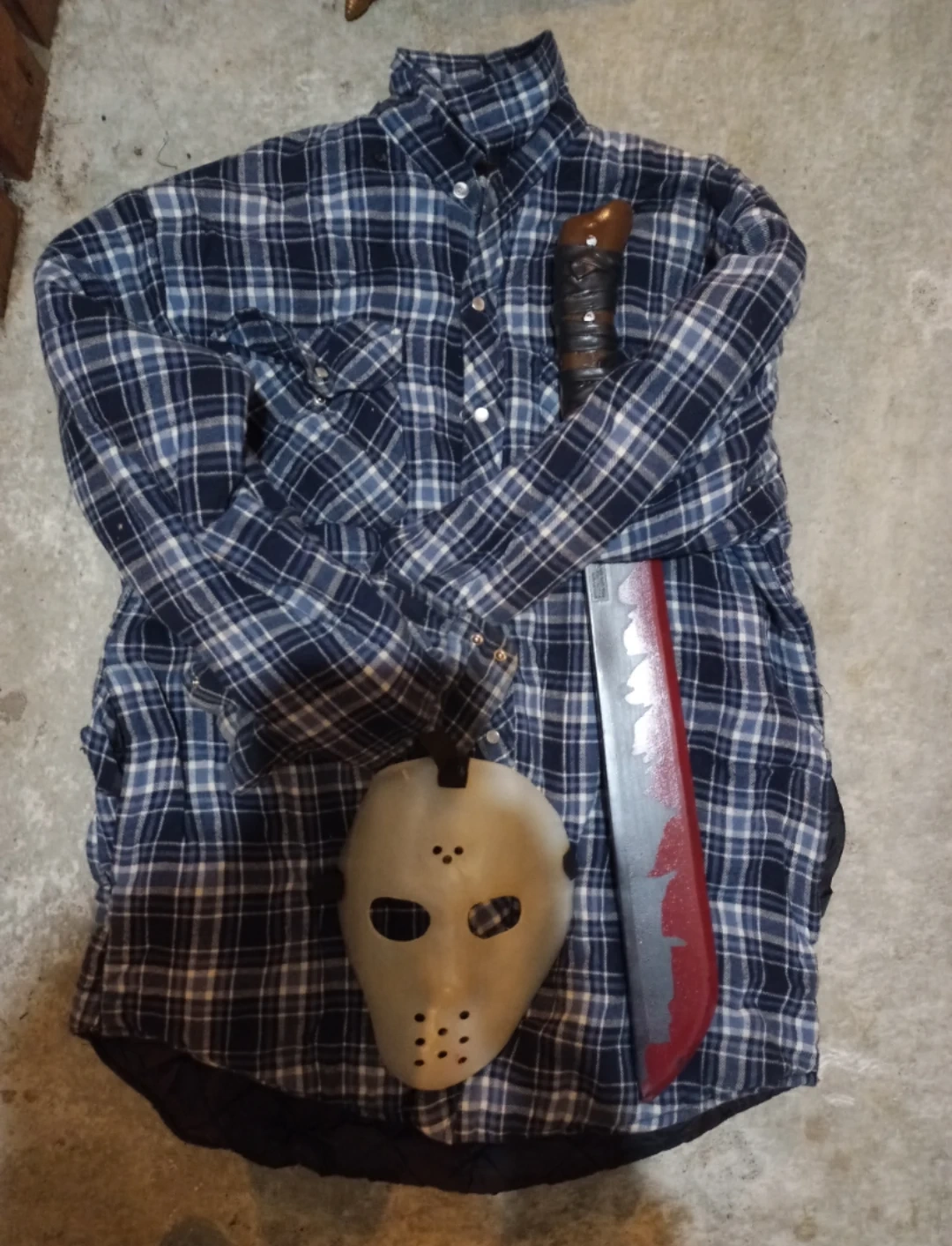 Jason Costume Flannel Shirt, Machete Prop, and Mask
