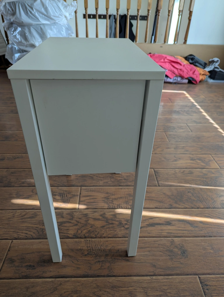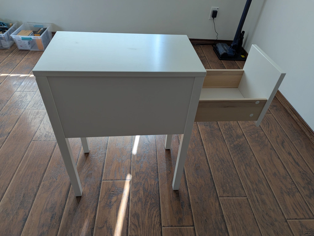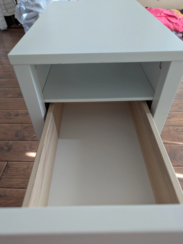 Small white nightstand with a drawer and shelf. Very solidly built and in great condition.