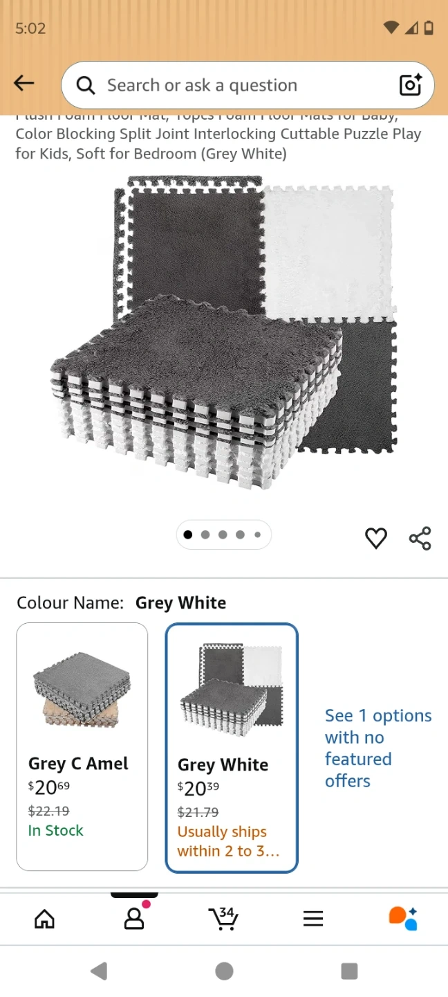Soft interlocking foam floor mats in grey and white. These puzzle play mats are cuttable and designed for kids' bedrooms. They're made of foam material and faux fur, extremely soft. Great for any room. Bought 10 packs never opened.