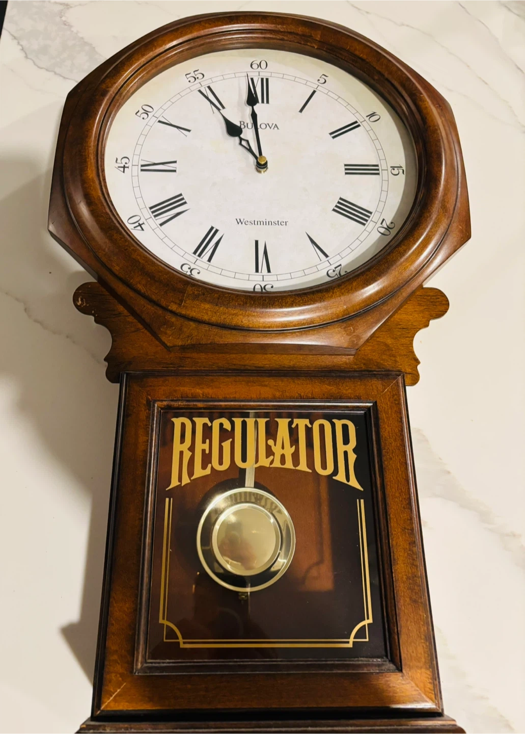 Buy & SellBulova Regulator Westminster Wall ClockBulova Regulator Westminster Wall Clock$95This is a Bulova Regulator Westminster wall clock. It features a wooden case and a pendulum. A classic timepiece for any room!WHERE TO MEETCheck LocationView MapSELLERLilaBendale261 review0 chats·1 favorites·36 viewsSEND CHAT TO SELLERHi Lila! I’m interested in your listing.Hi Lila! I’m interested in your listing.Get the Karrot app to chatSign In to chat