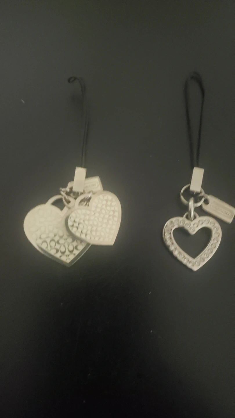 Set of three Coach charms. Includes two heart charms and one flower and butterfly charm. They're great for personalizing bags, keychains or cell phone.