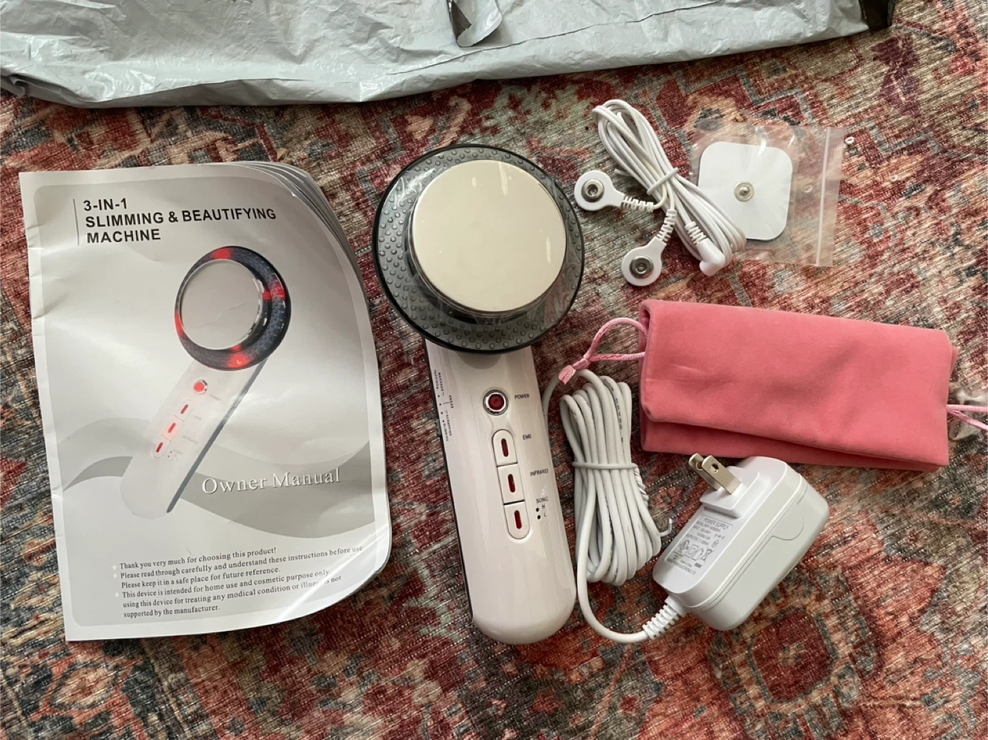 NEVER USED. Selling a 3-in-1 slimming and beautifying machine! It comes with the owner's manual and all the accessories shown in the picture. It uses EMS and infrared technology. This device is intended for home use and cosmetic purposes only