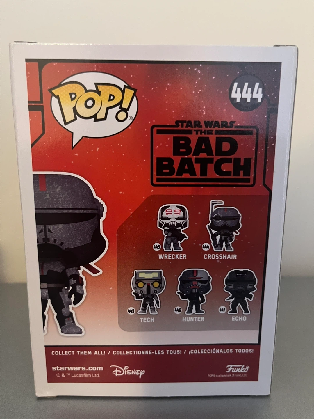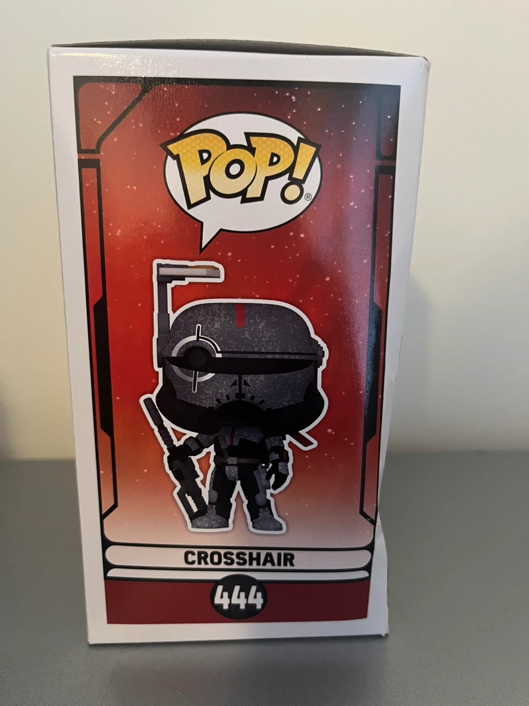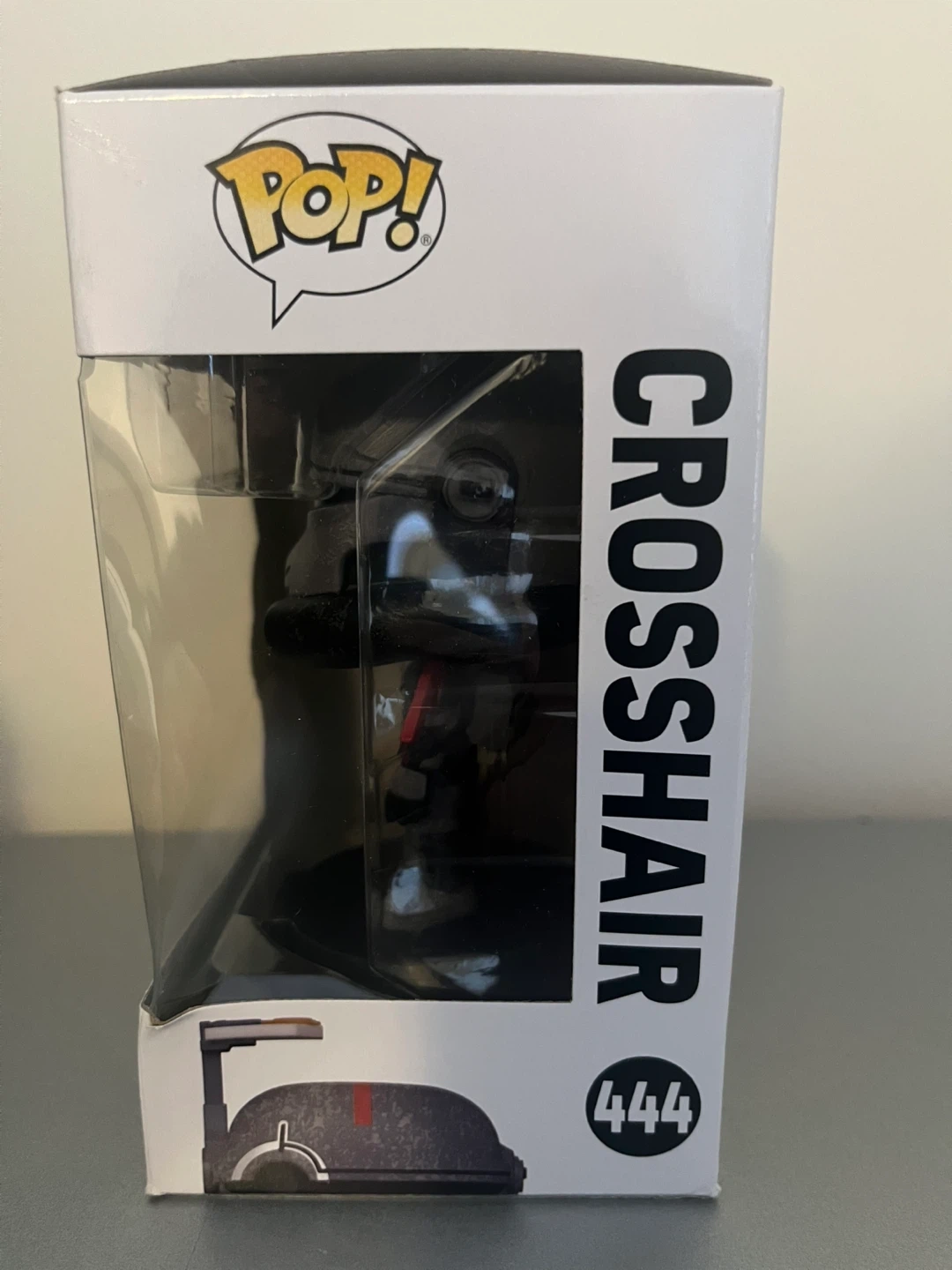 This is a Funko Pop! vinyl figure of Crosshair from Star Wars: The Bad Batch. It's character number 444 in the series. The figure comes in its original box.