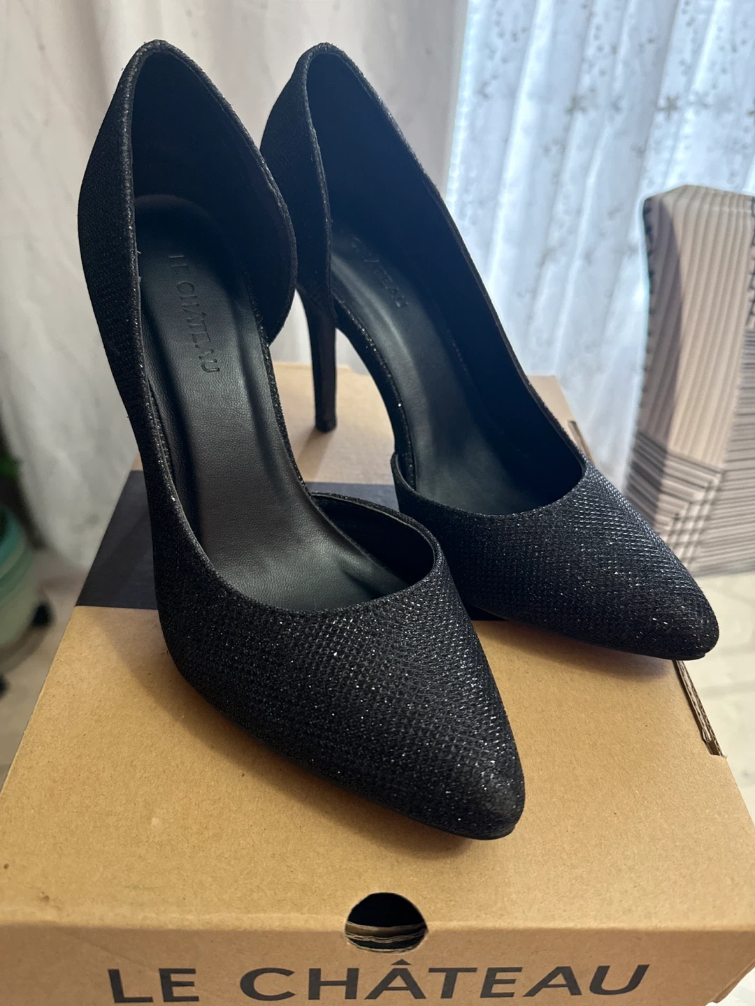 Selling a pair of Le Chateau black heels in size 7! They have a cute, classic design. The box is included, along with extra heel tips. Originally bought for $69.95