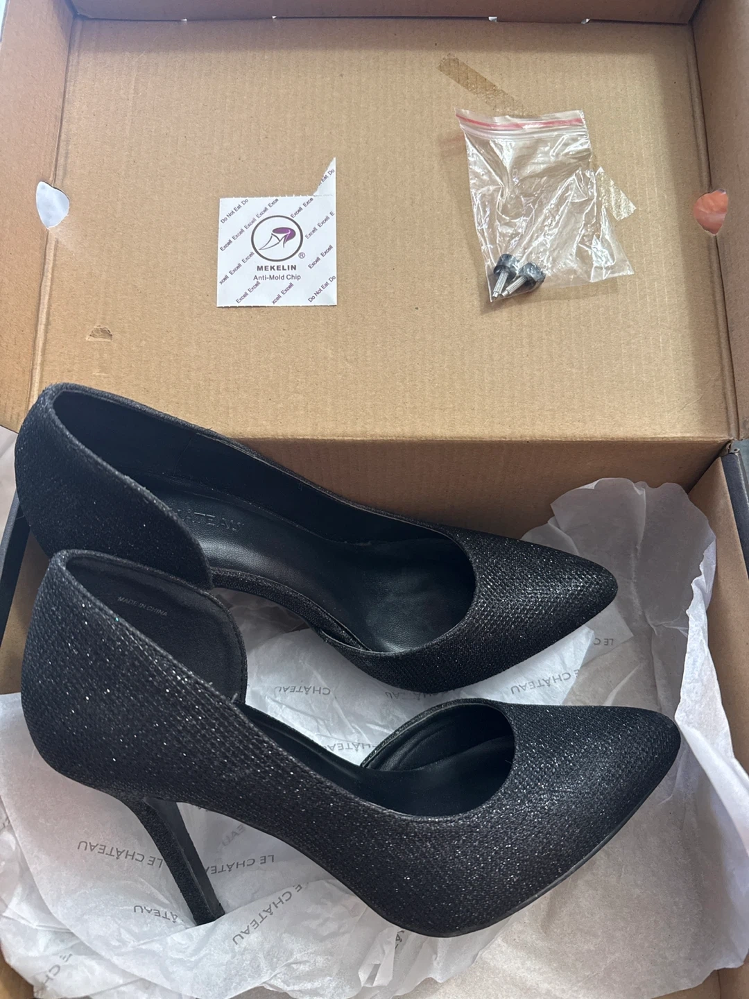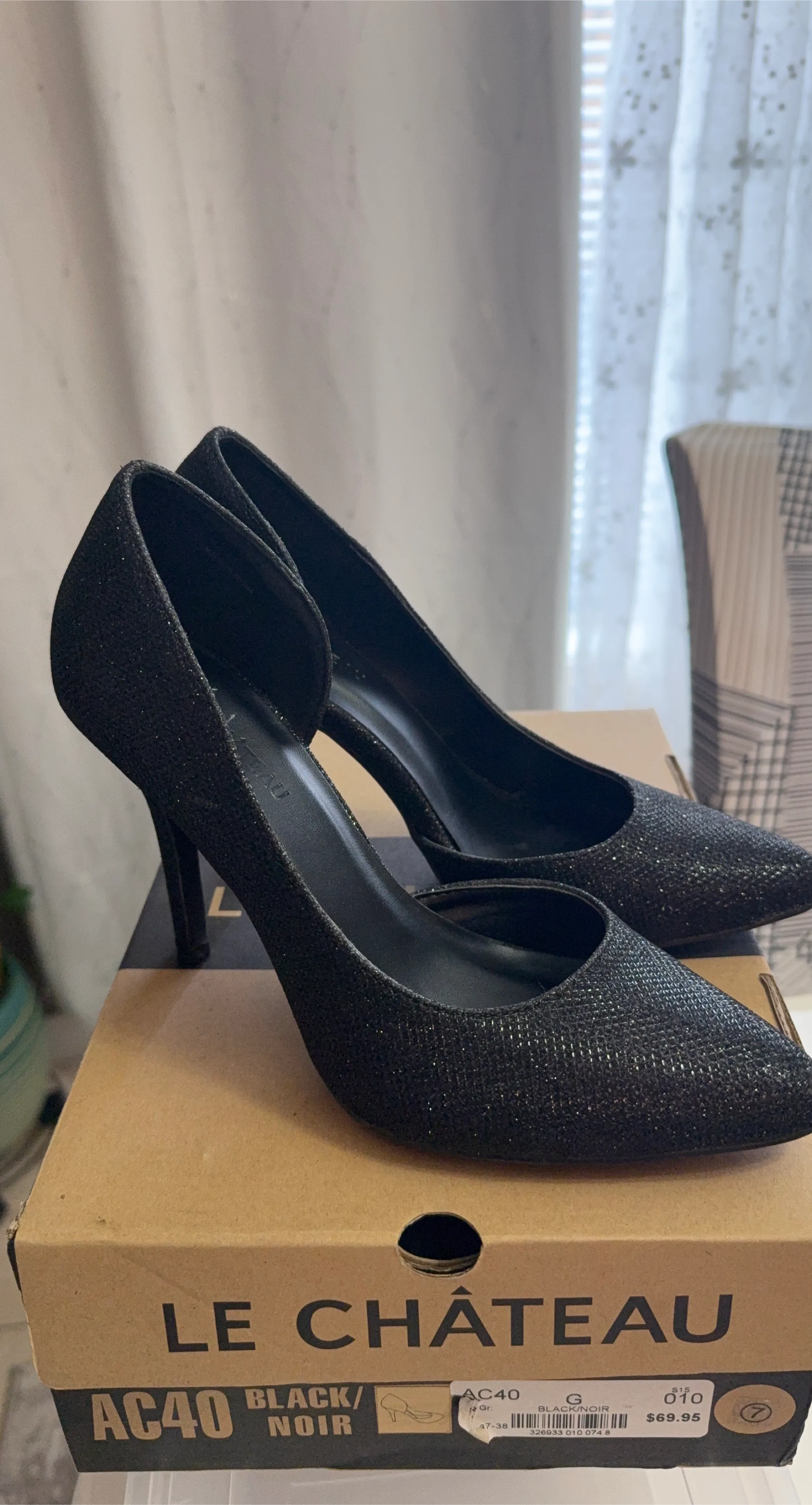 Selling a pair of Le Chateau black heels in size 7! They have a cute, classic design. The box is included, along with extra heel tips. Originally bought for $69.95